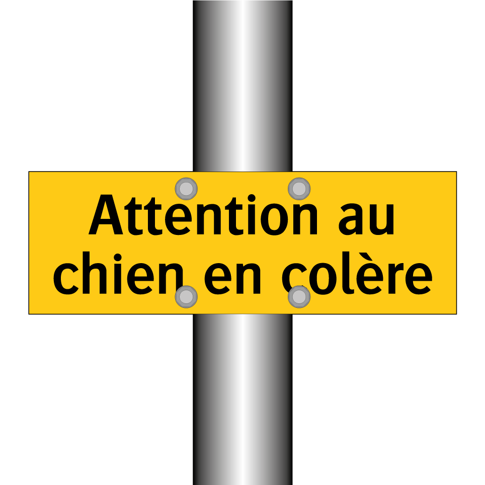 Panneau d'avertissement avec le texte : "Attention au chien en colère"