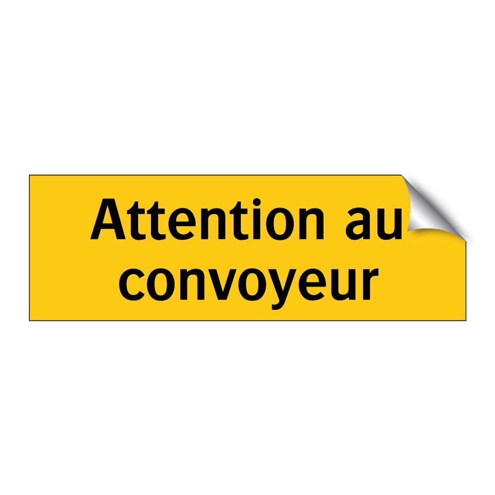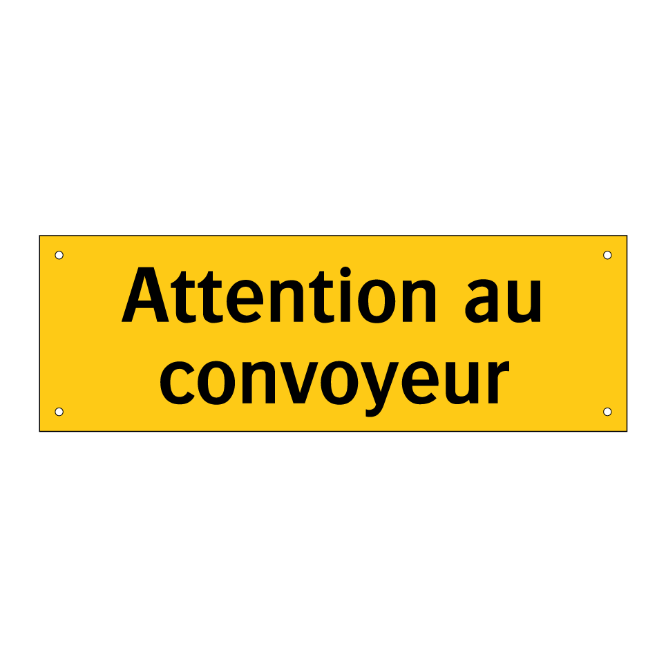 Panneau d'avertissement avec le texte : "Attention au convoyeur"