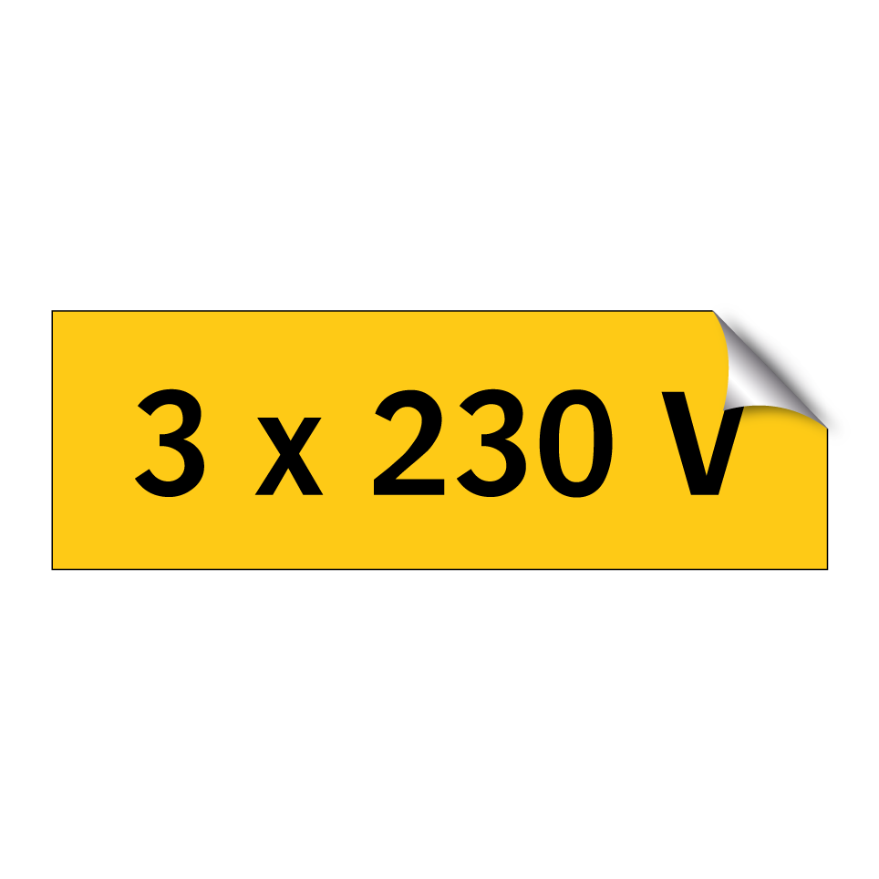 Panneau d'avertissement avec le texte : "3 x 230 V"