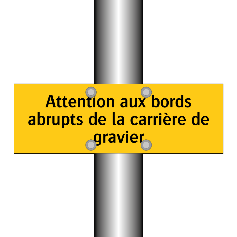 Panneau d'avertissement avec le texte : "Attention aux bords abrupts de la carrière de gravier"