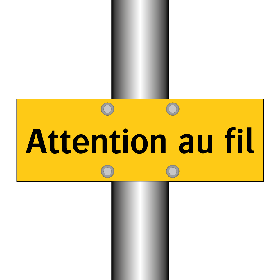 Panneau d'avertissement avec le texte : "Attention au fil"