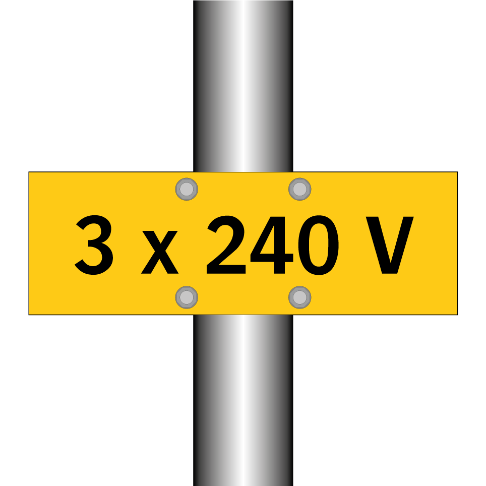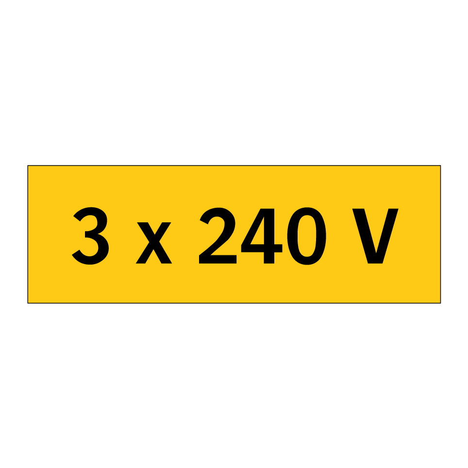 Panneau d'avertissement avec le texte : "3 x 240 V"