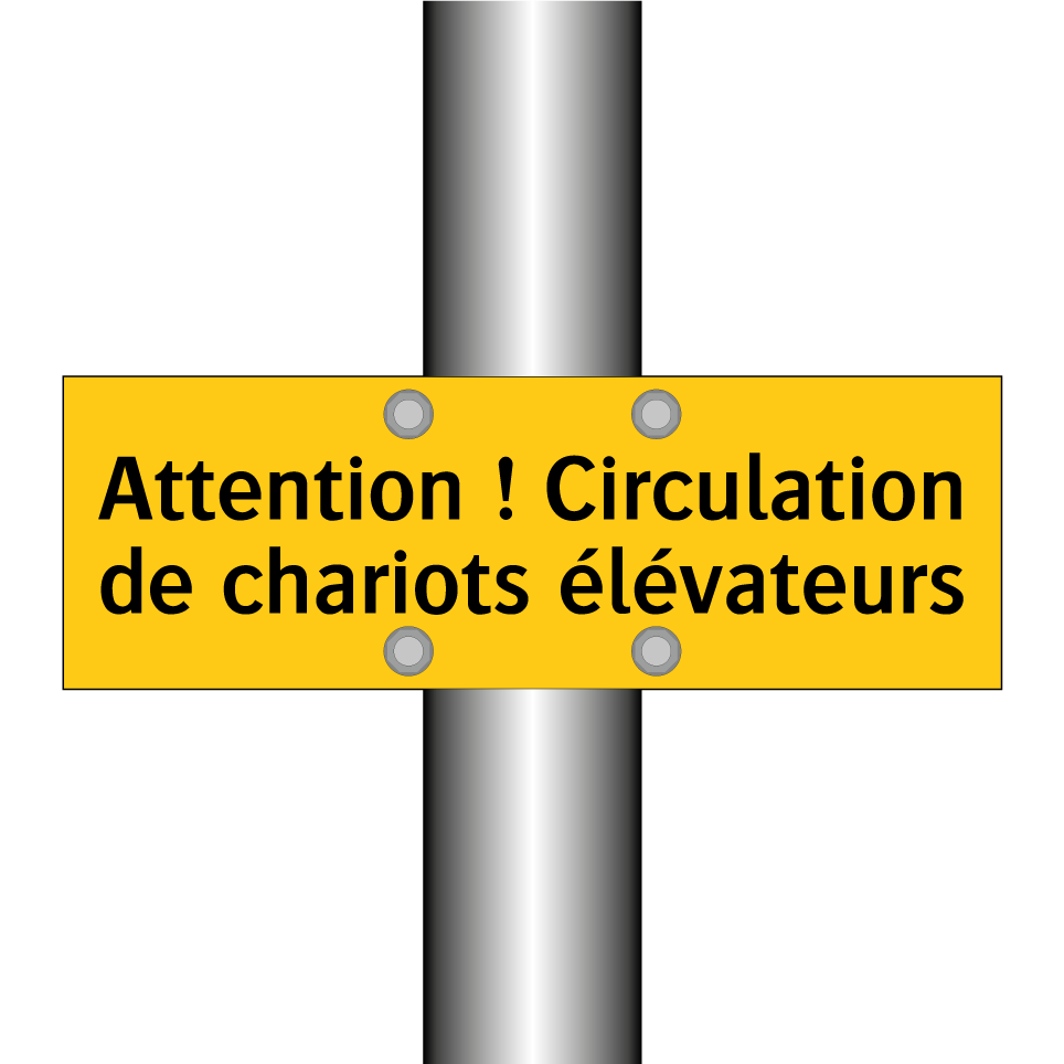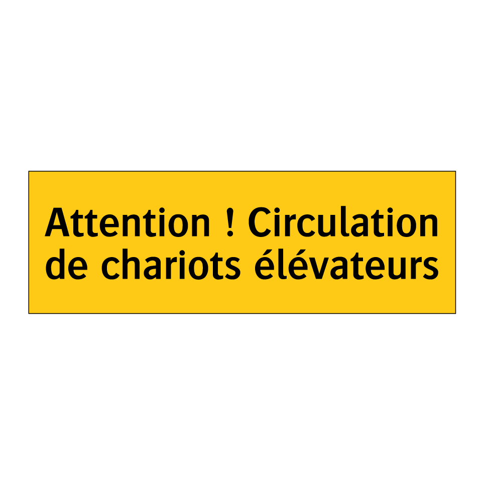 Panneau d'avertissement avec le texte : "Attention ! Circulation de chariots élévateurs"