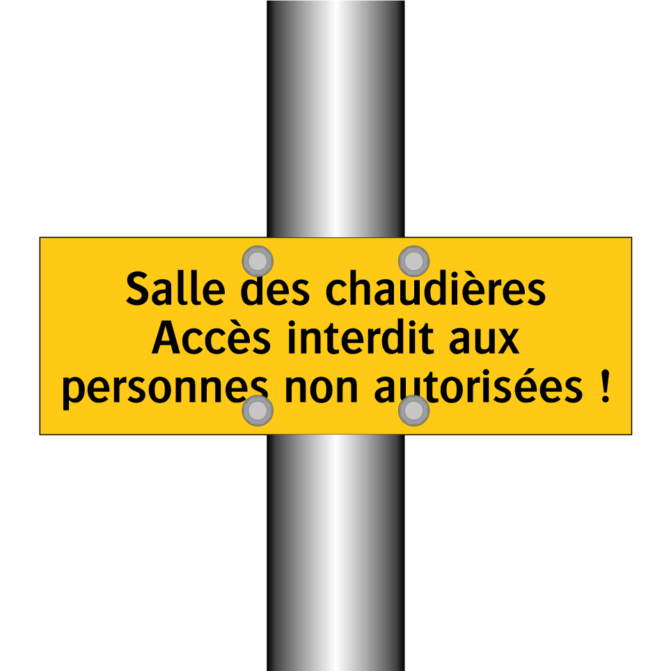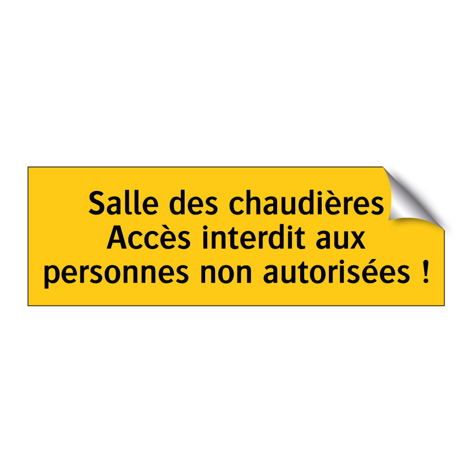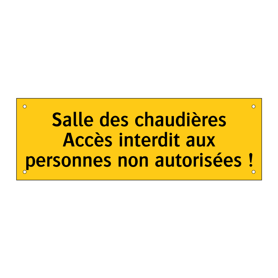 Panneau d'avertissement avec le texte : "Salle des chaudières Accès interdit aux personnes non autorisées !"