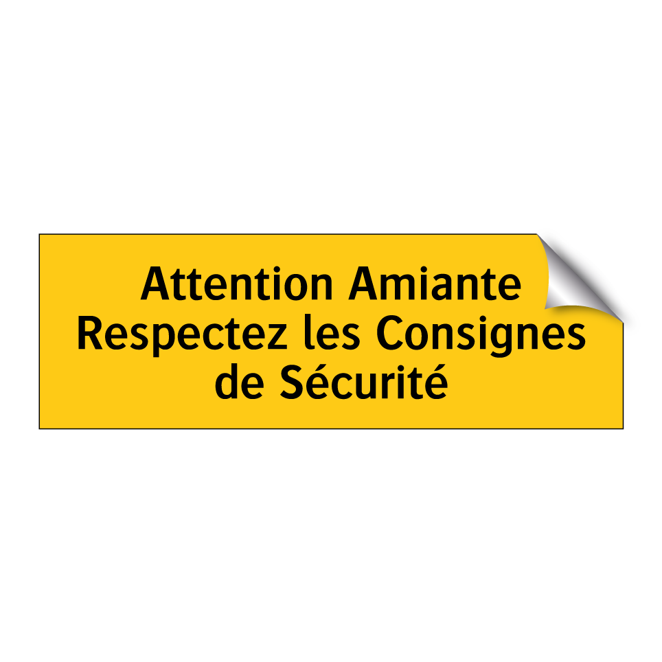 Panneau d'avertissement avec le texte : "Attention Amiante Respectez les Consignes de Sécurité"
