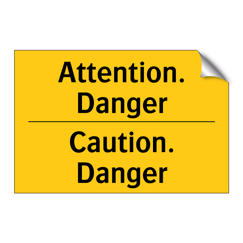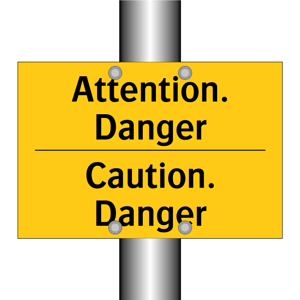 Panneau d'avertissement bilingue avec texte en français : "Attention. Danger", et en anglais : "Caution. Danger"