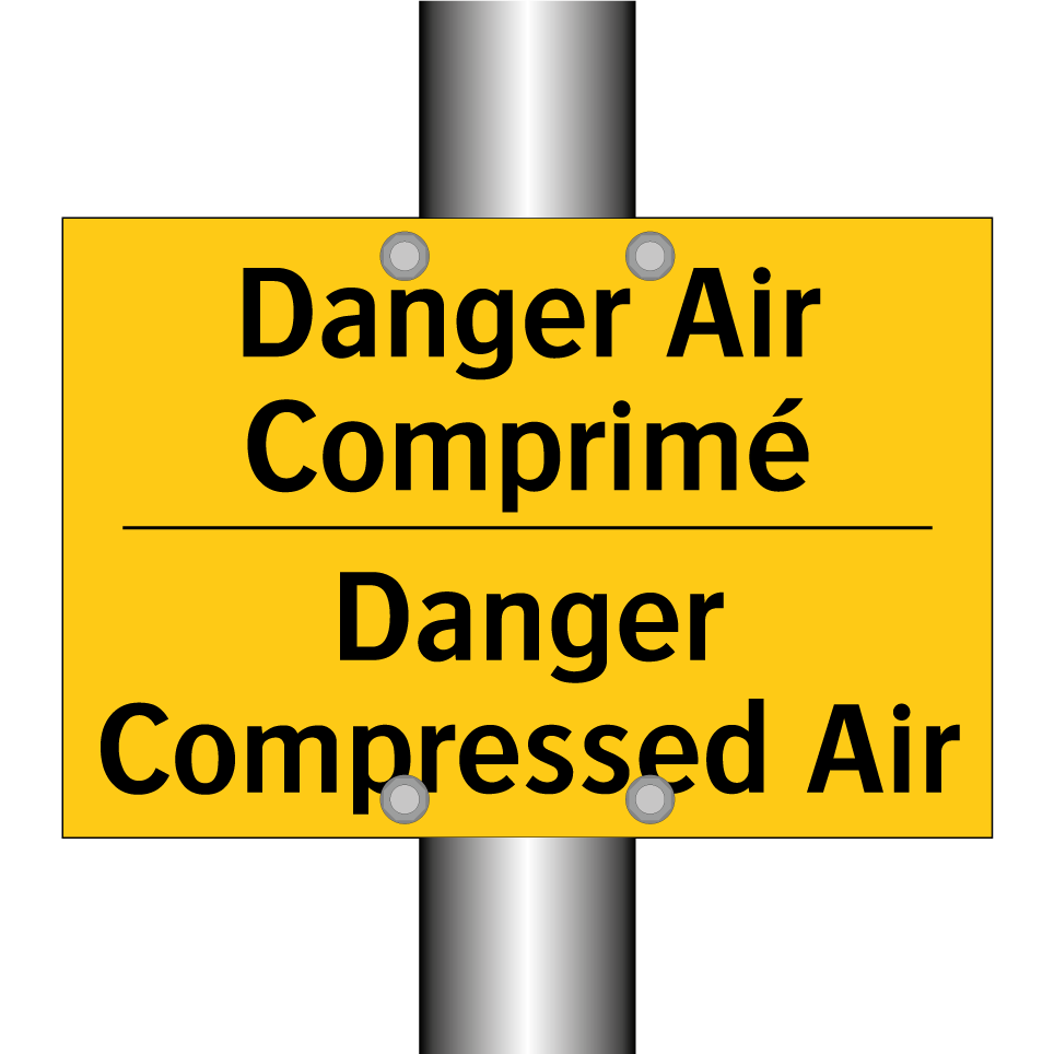 Panneau d'avertissement bilingue avec texte en français : "Danger Air Comprimé", et en anglais : "Danger Compressed Air"