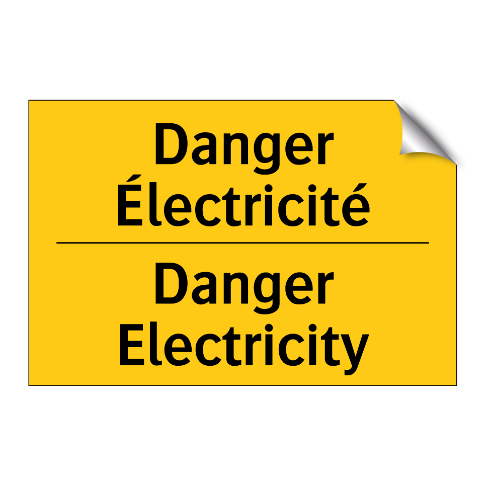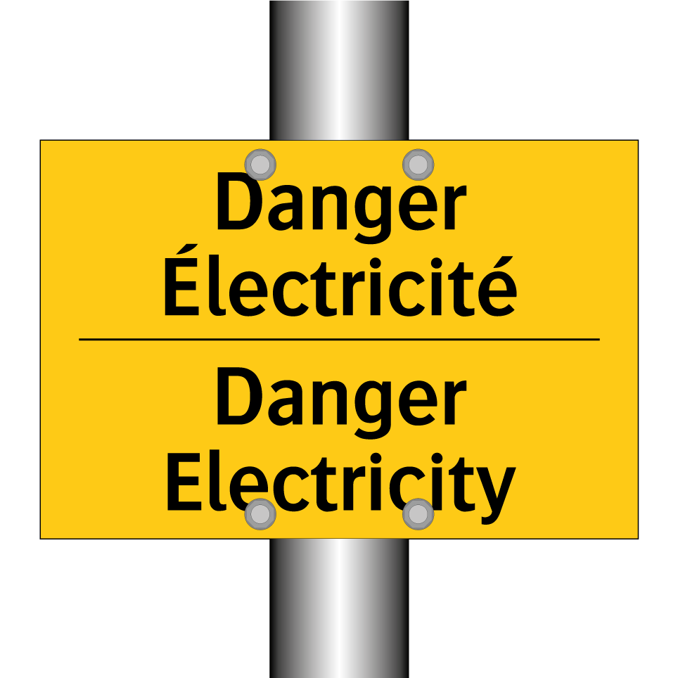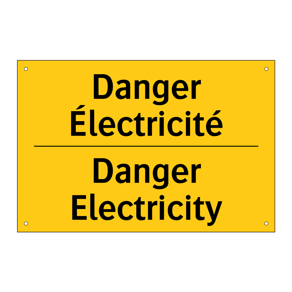 Panneau d'avertissement bilingue avec texte en français : "Danger Électricité", et en anglais : "Danger Electricity"
