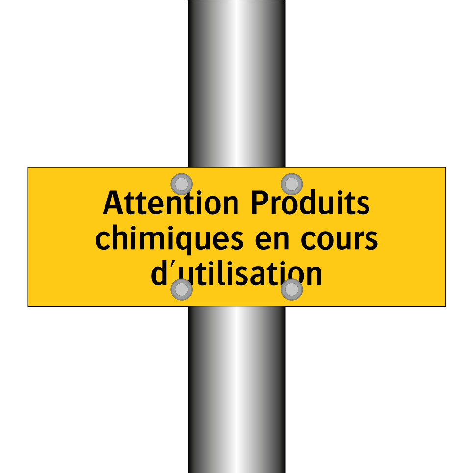 Panneau d'avertissement avec le texte : "Attention Produits chimiques en cours d'utilisation"