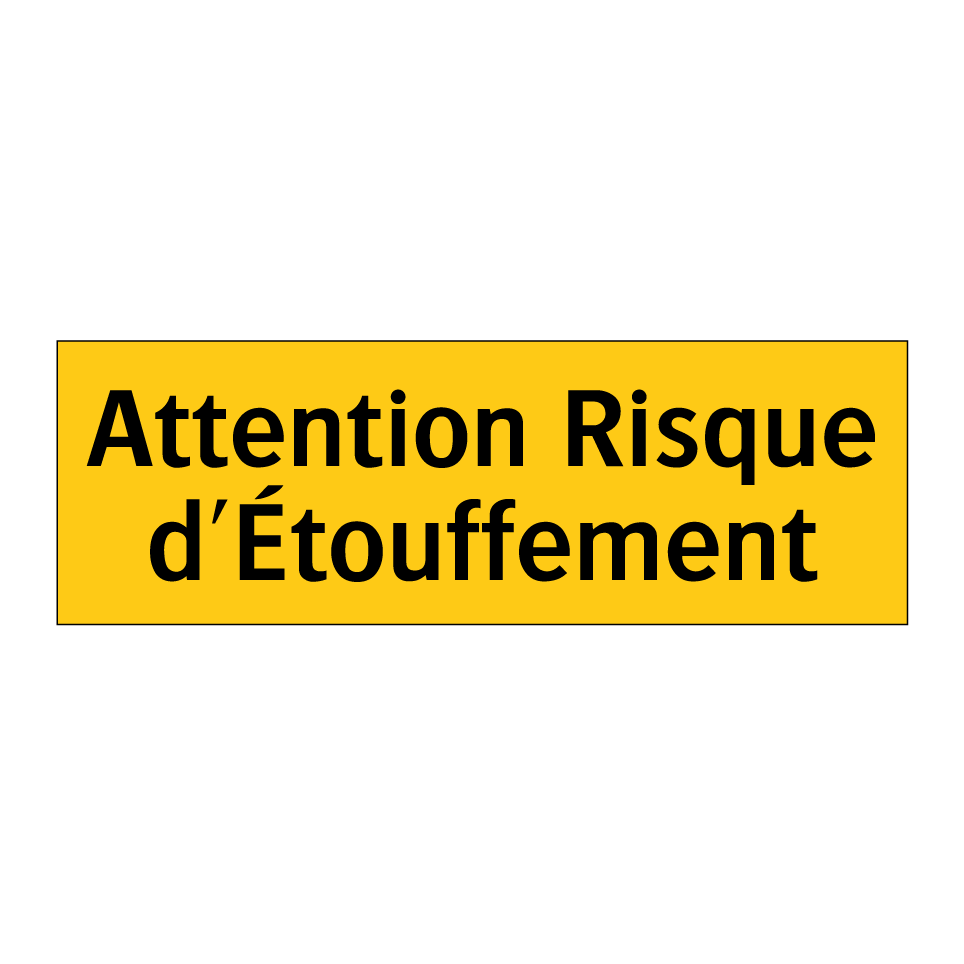 Panneau d'avertissement avec le texte : "Attention Risque d'Étouffement"