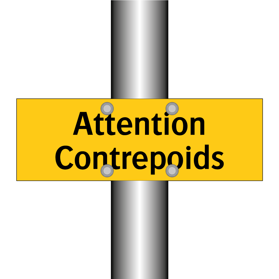 Panneau d'avertissement avec le texte : "Attention Contrepoids"