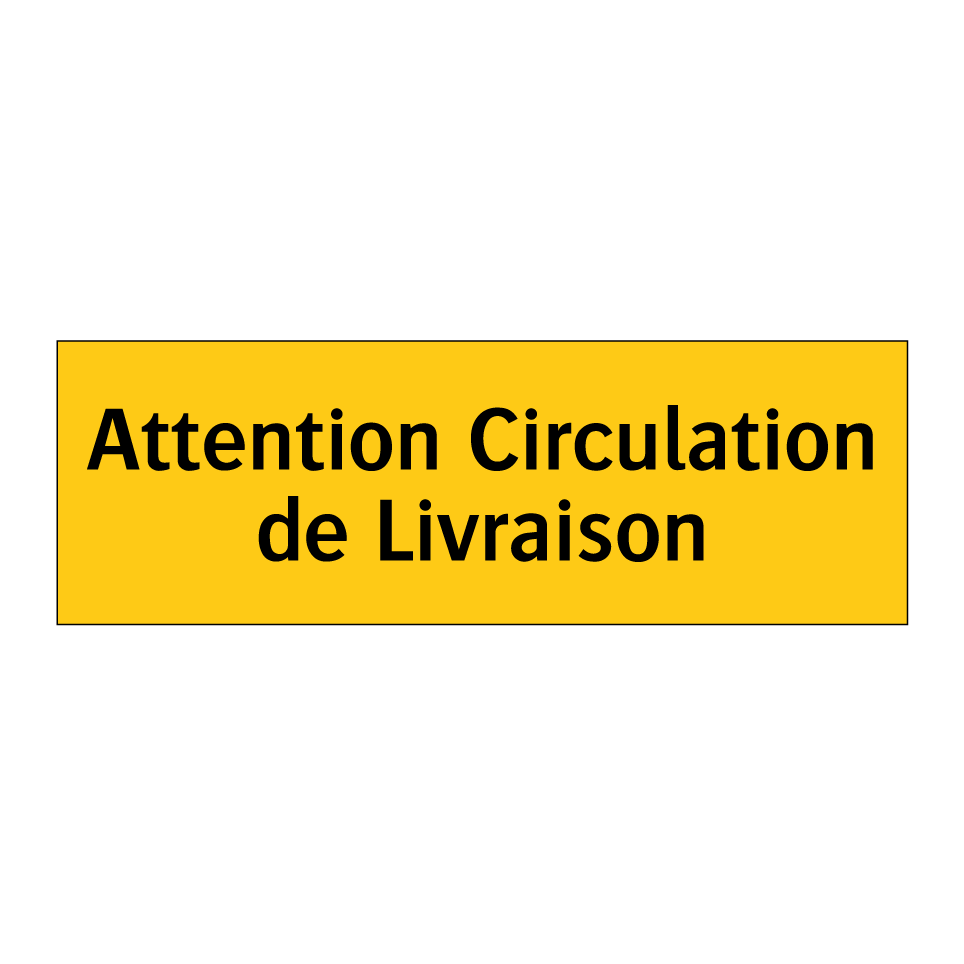 Panneau d'avertissement avec le texte : "Attention Circulation de Livraison"