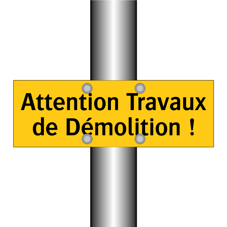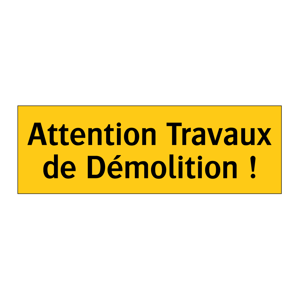 Panneau d'avertissement avec le texte : "Attention Travaux de Démolition !"
