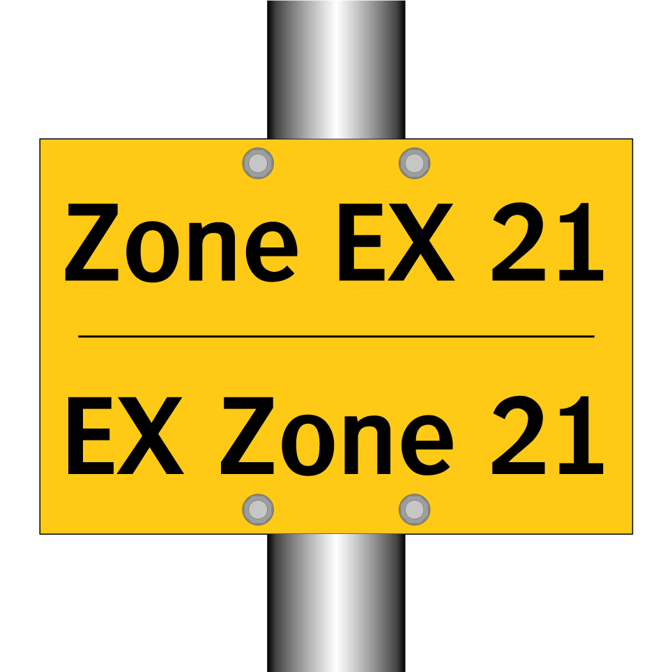 Panneau d'avertissement bilingue avec texte en français : "Zone EX 21", et en anglais : "EX Zone 21"