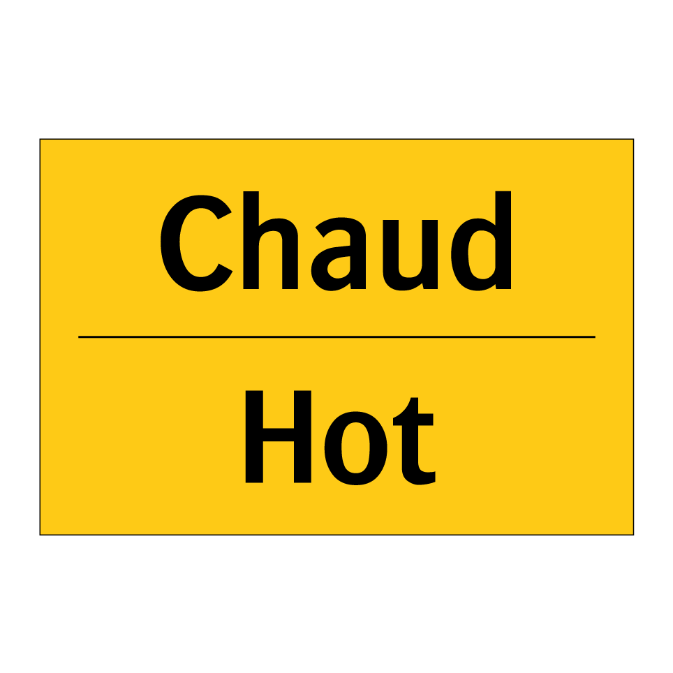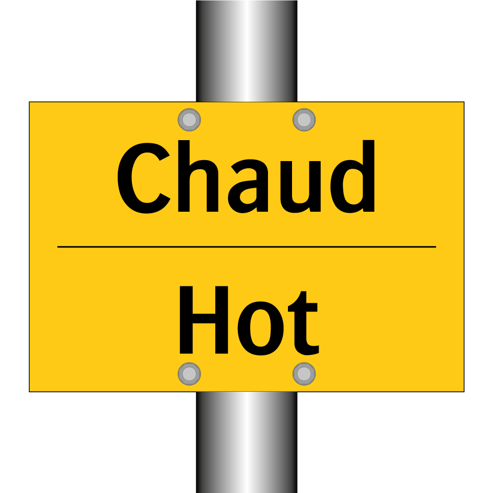 Panneau d'avertissement bilingue avec texte en français : "Chaud", et en anglais : "Hot"