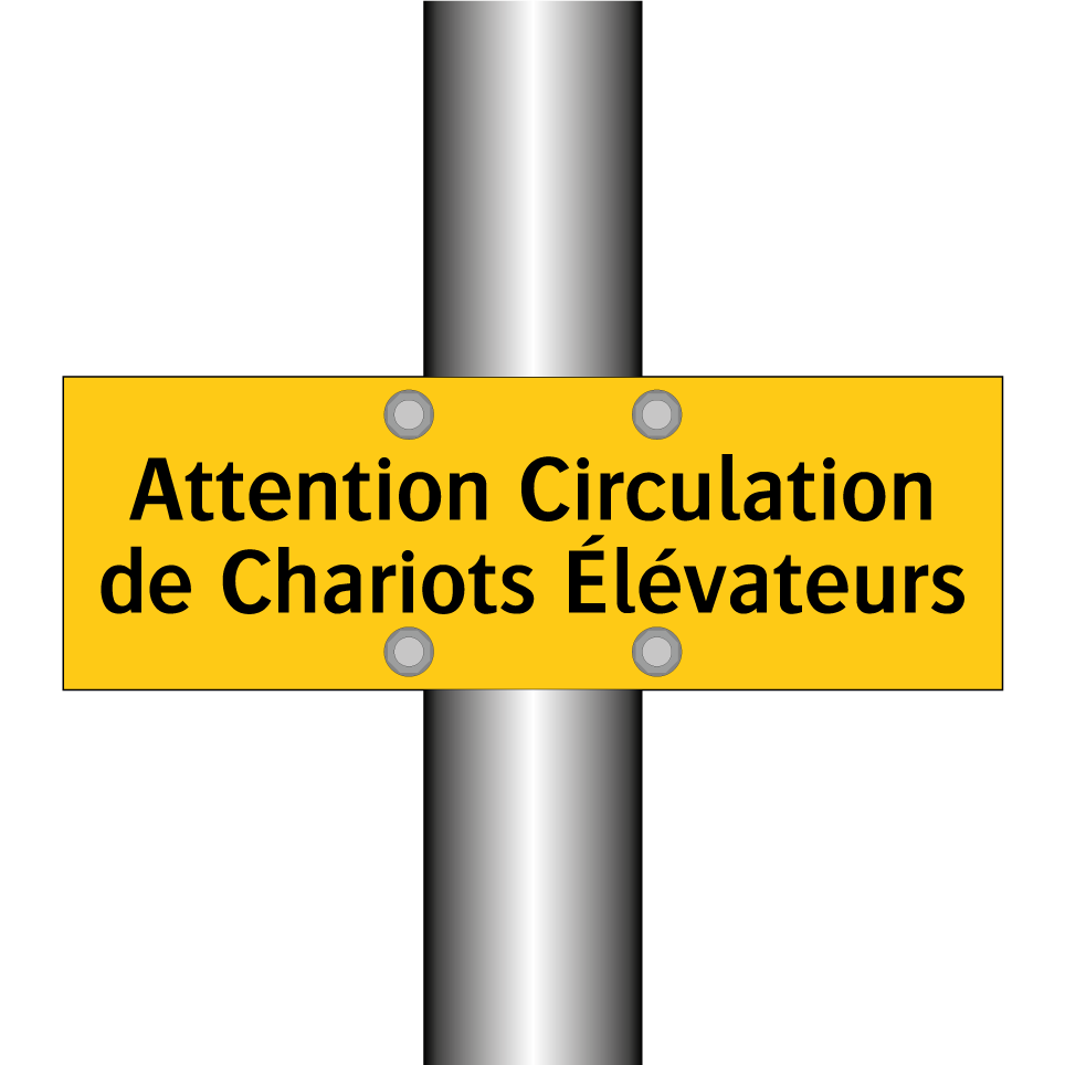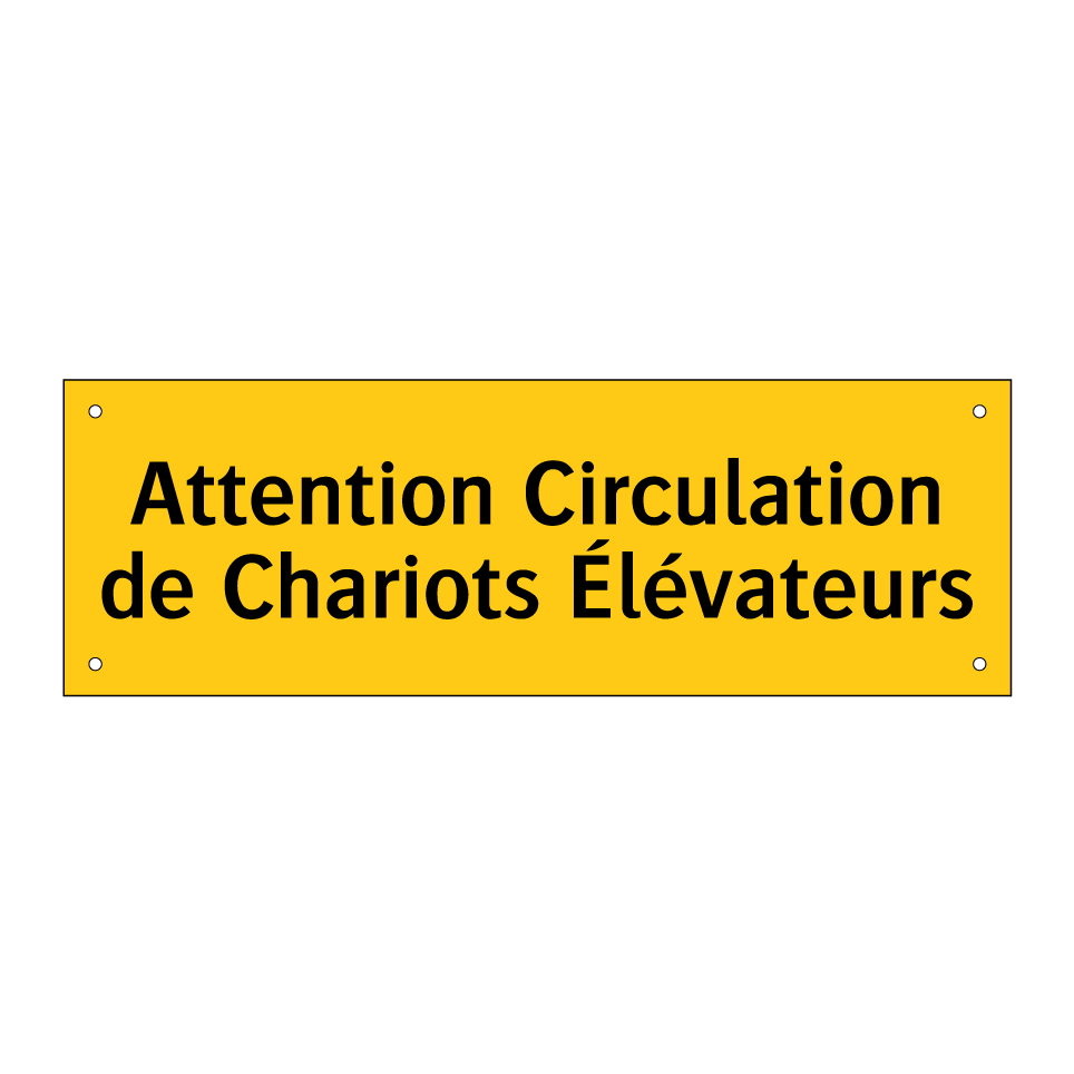 Panneau d'avertissement avec le texte : "Attention Circulation de Chariots Élévateurs"
