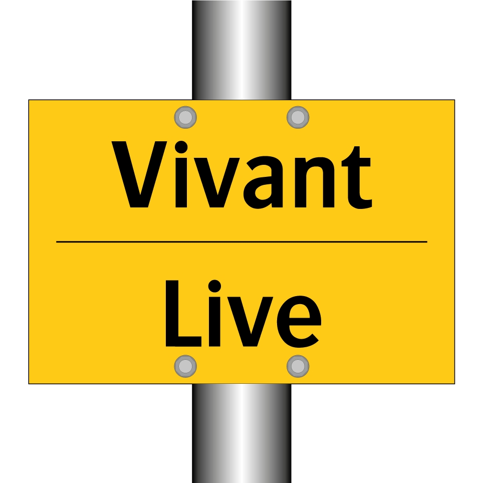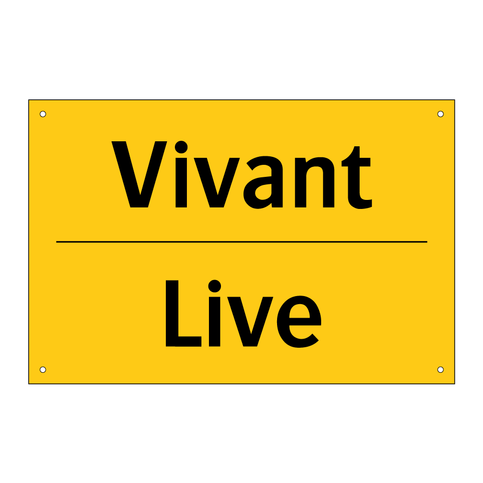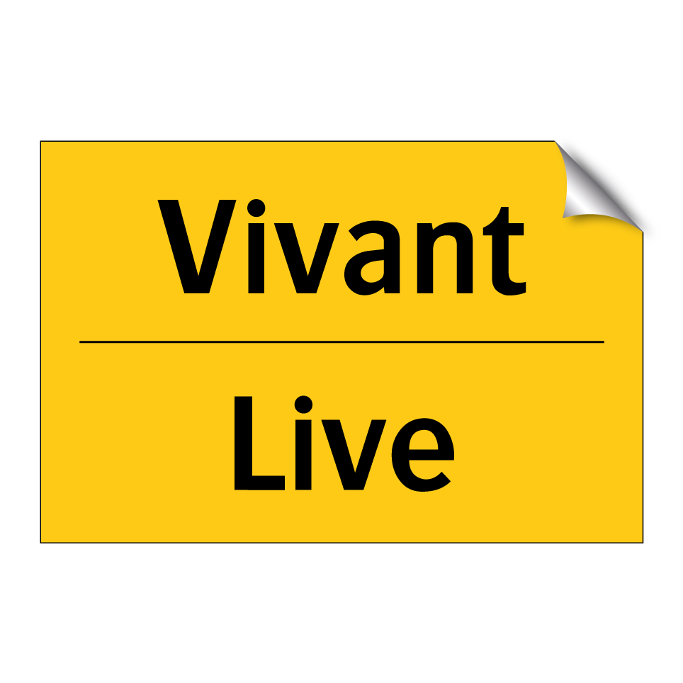 Panneau d'avertissement bilingue avec texte en français : "Vivant", et en anglais : "Live"
