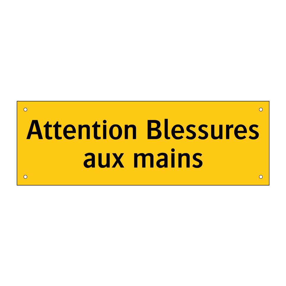 Panneau d'avertissement avec le texte : "Attention Blessures aux mains"