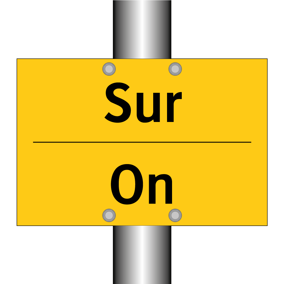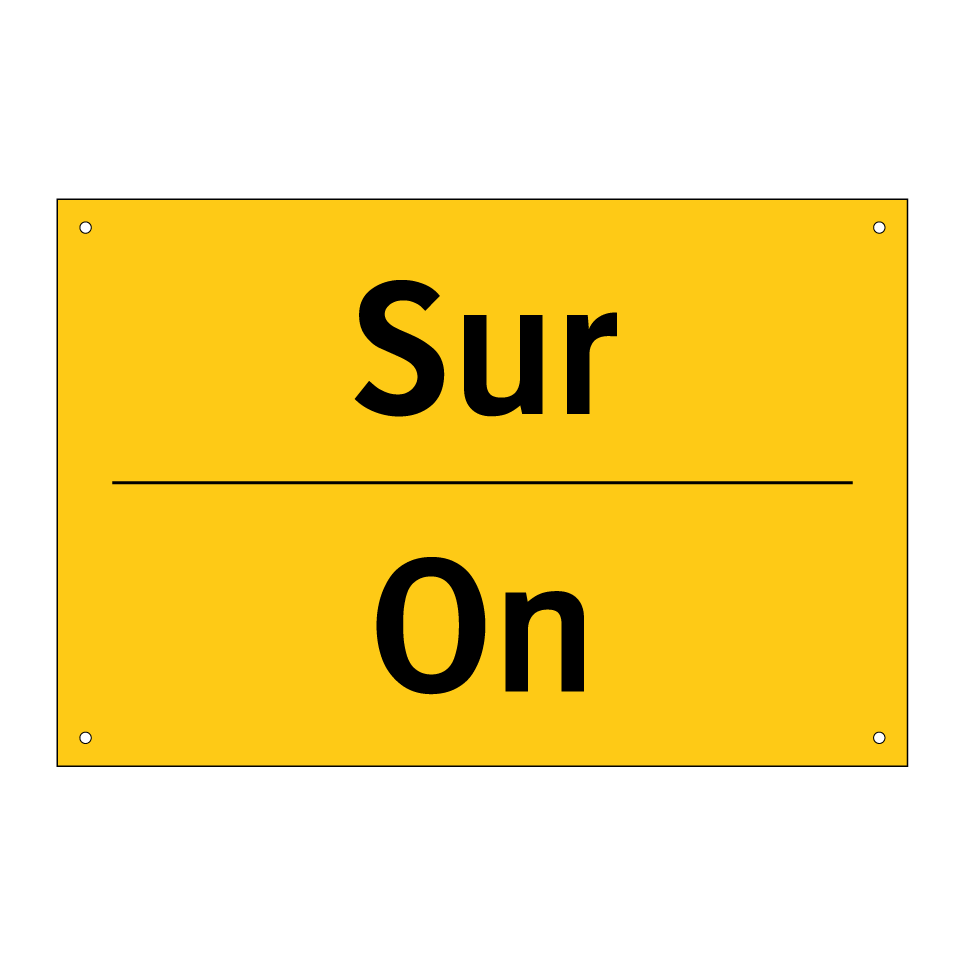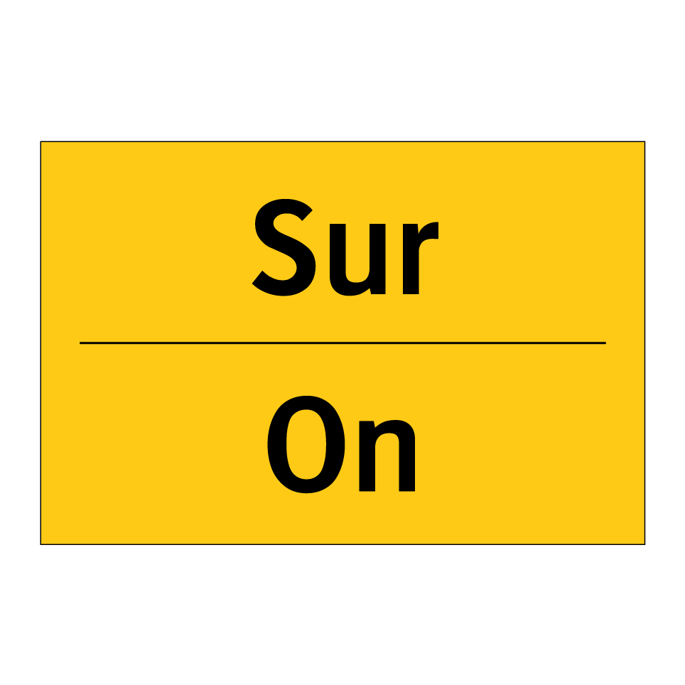 Panneau d'avertissement bilingue avec texte en français : "Sur", et en anglais : "On"