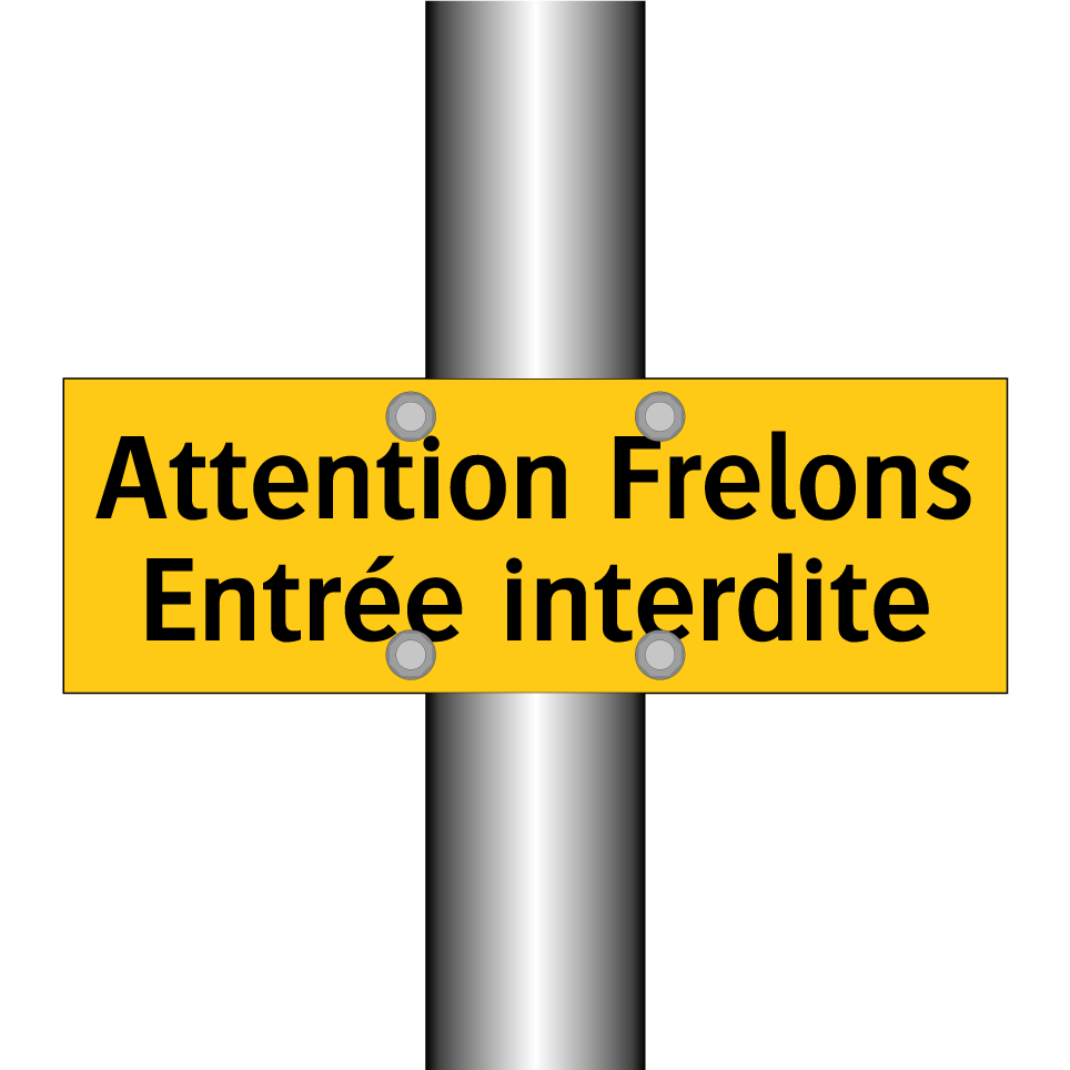 Panneau d'avertissement avec le texte : "Attention Frelons Entrée interdite"