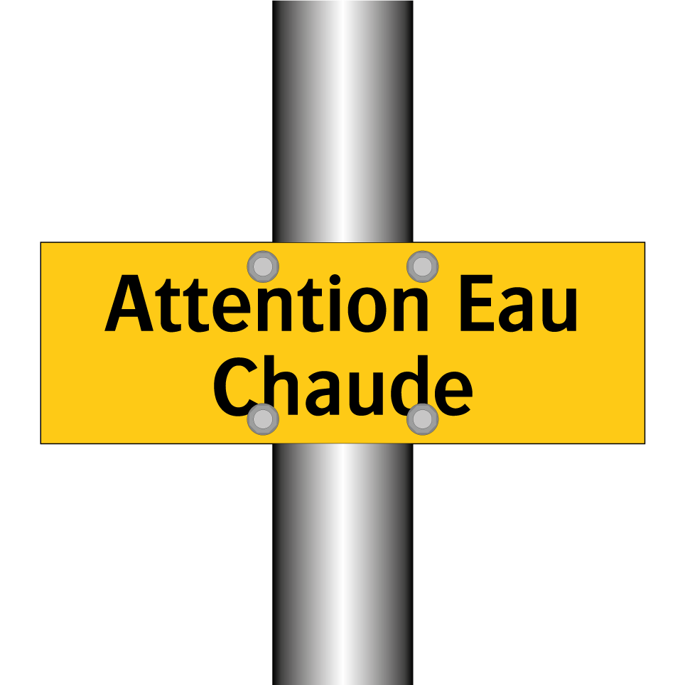 Panneau d'avertissement avec le texte : "Attention Eau Chaude"