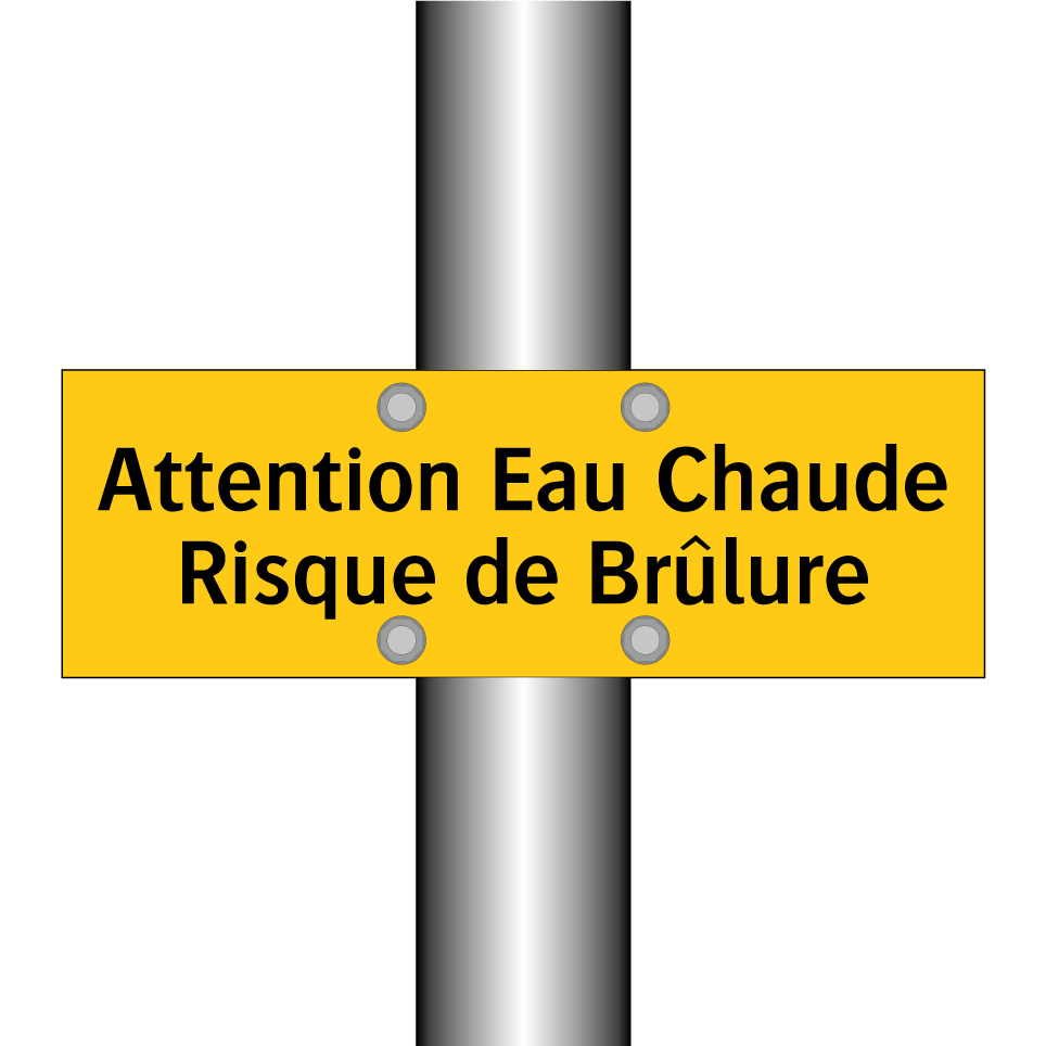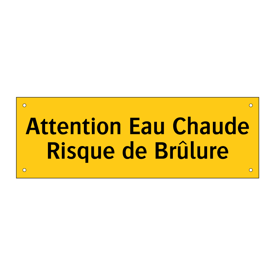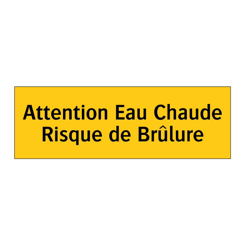 Panneau d'avertissement avec le texte : "Attention Eau Chaude Risque de Brûlure"