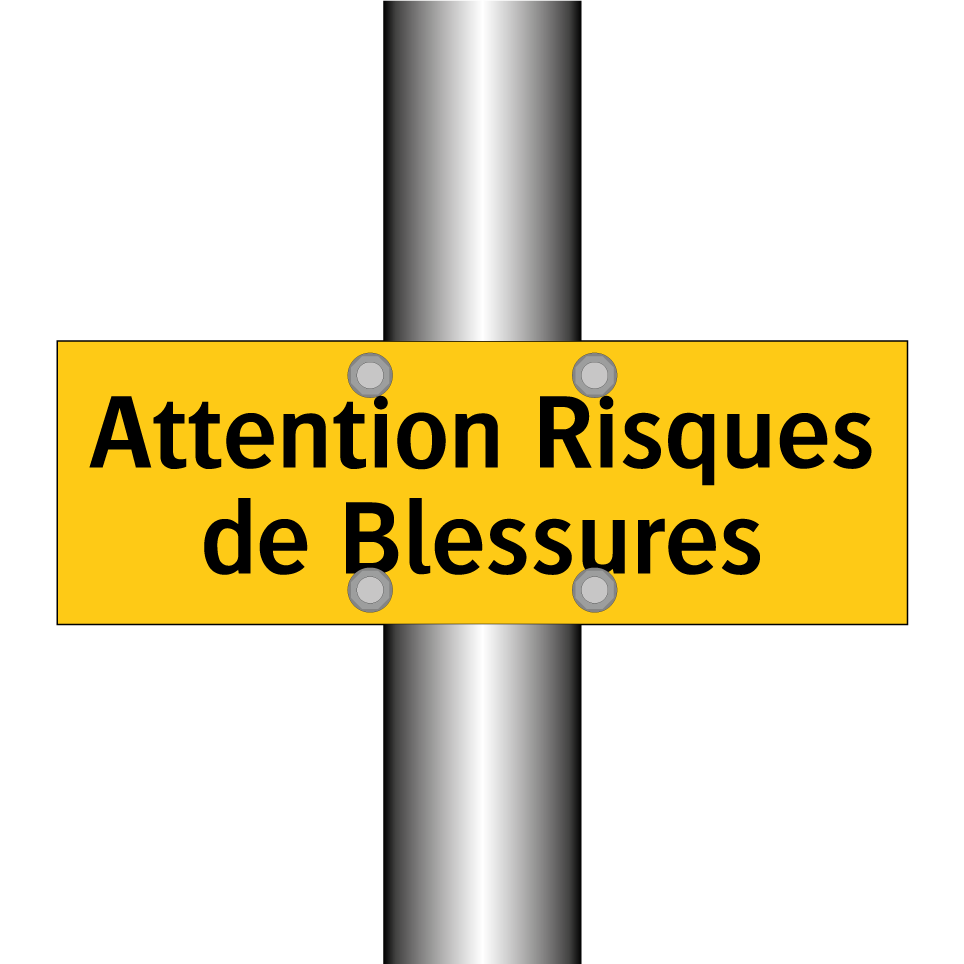 Panneau d'avertissement avec le texte : "Attention Risques de Blessures"