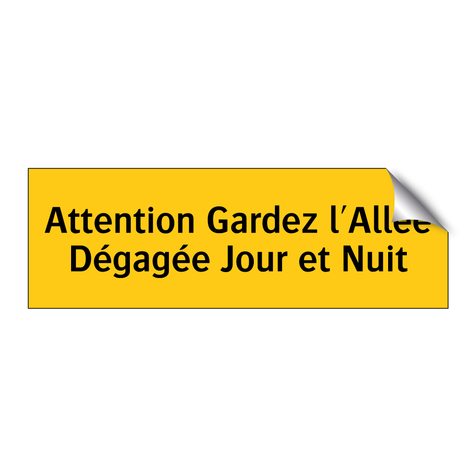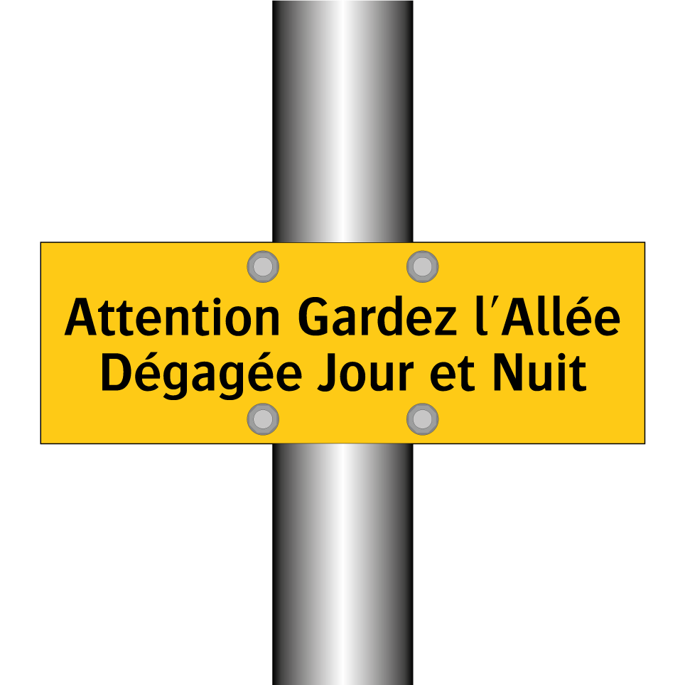 Panneau d'avertissement avec le texte : "Attention Gardez l'Allée Dégagée Jour et Nuit"