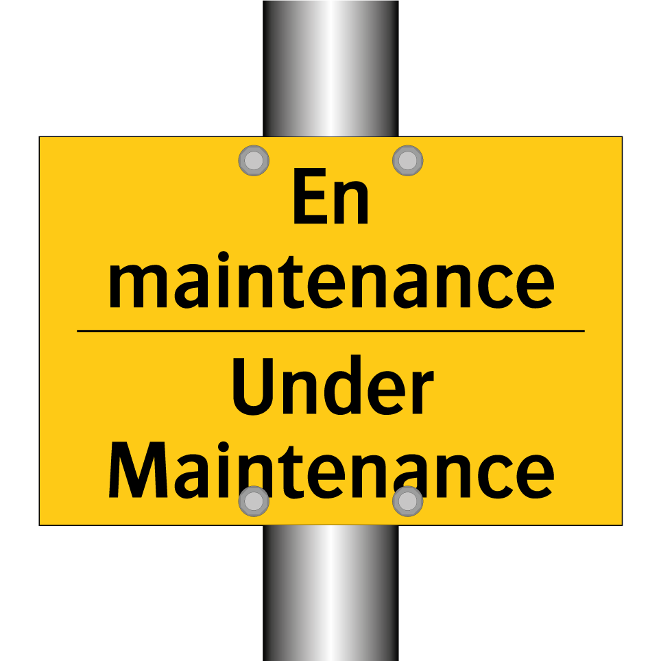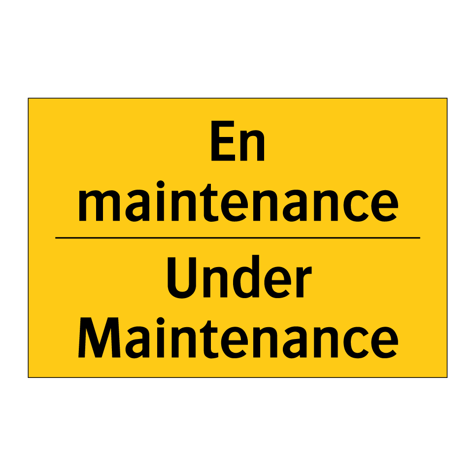 Panneau d'avertissement bilingue avec texte en français : "En maintenance", et en anglais : "Under Maintenance"