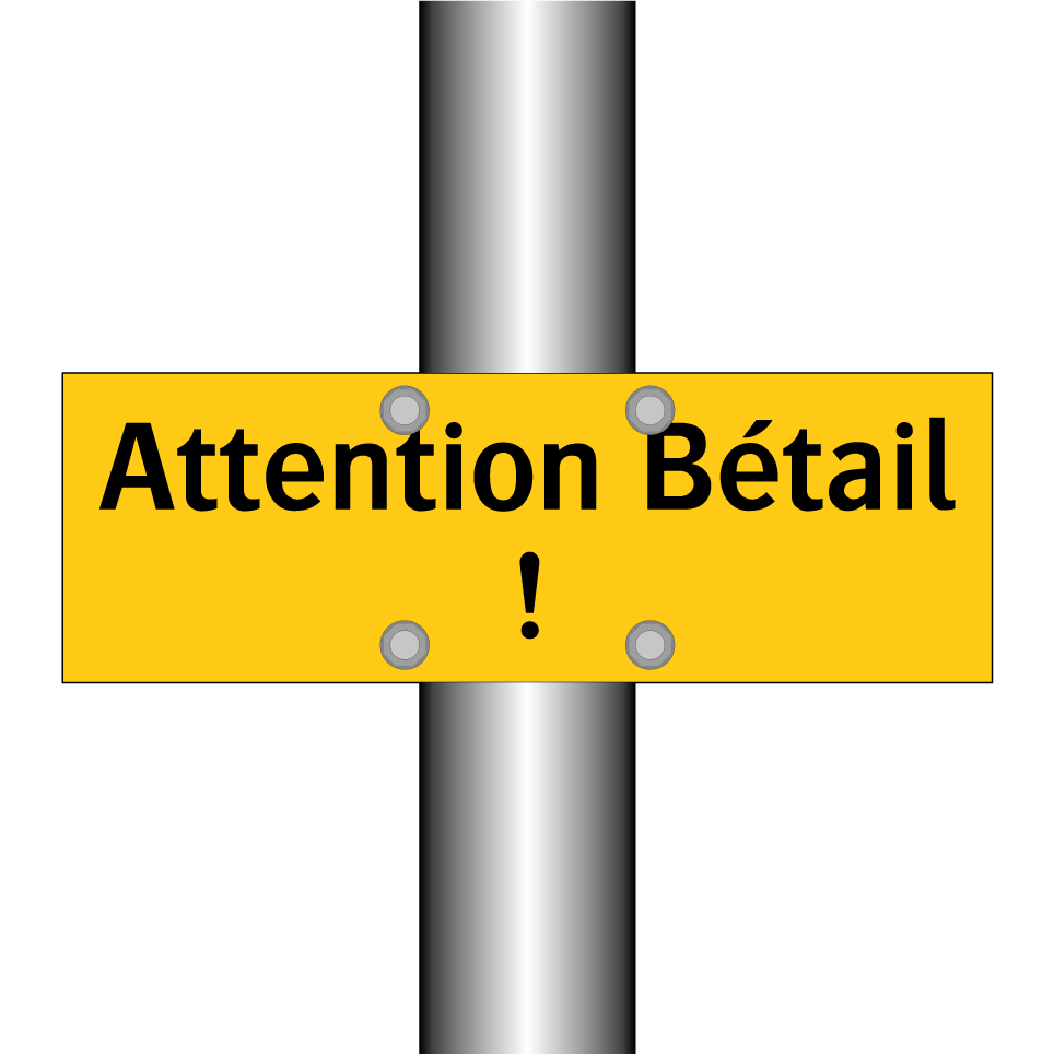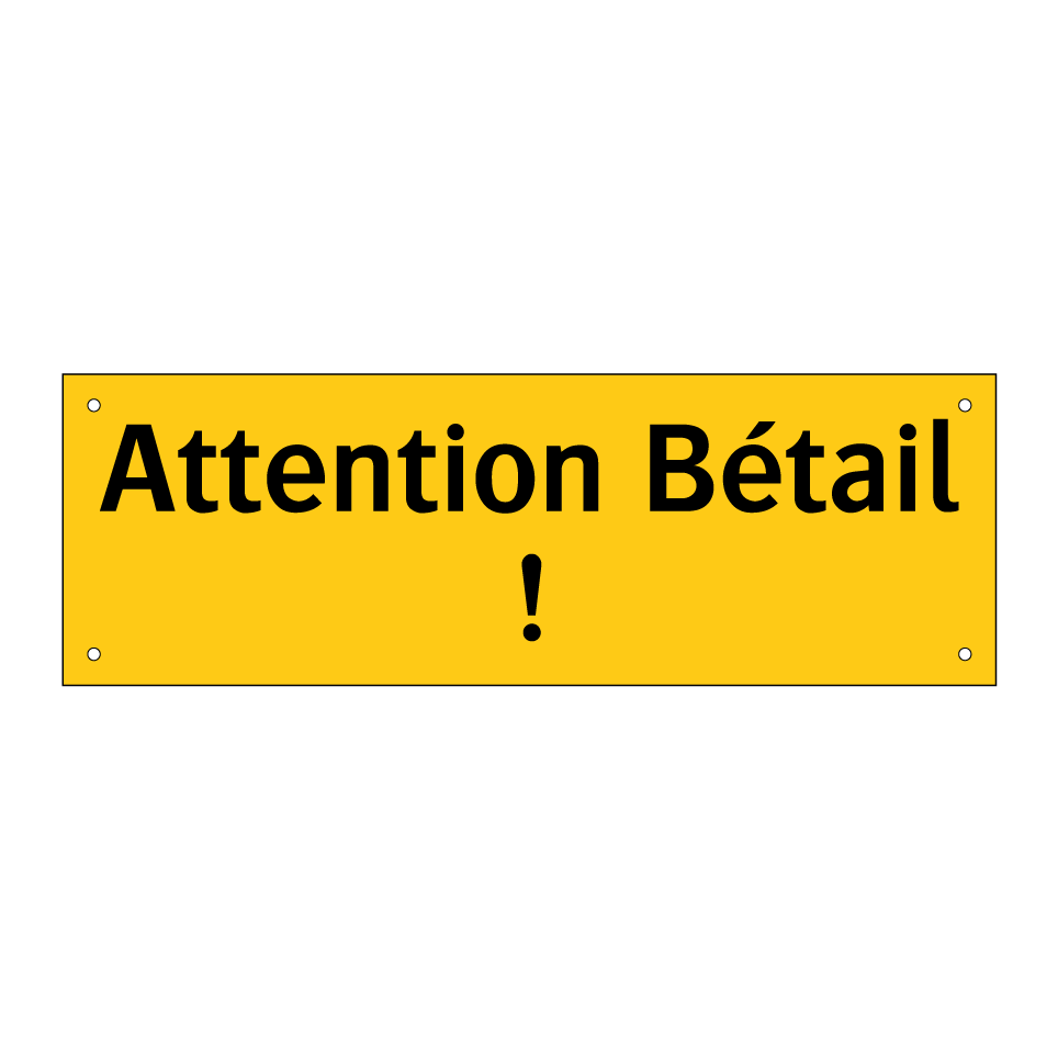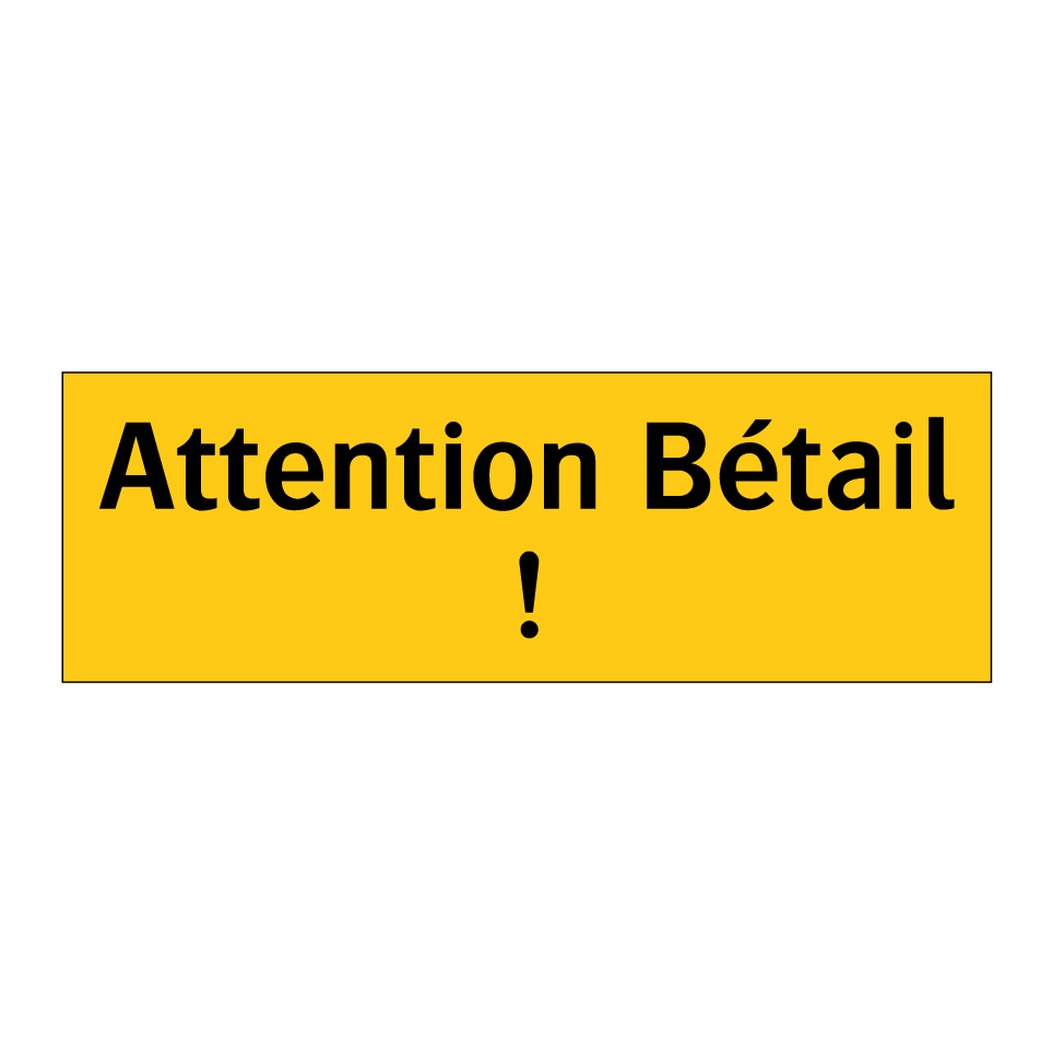 Panneau d'avertissement avec le texte : "Attention Bétail !"