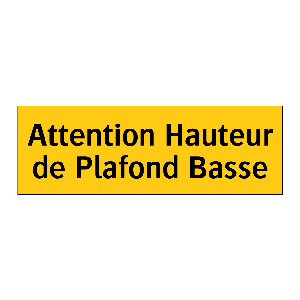Panneau d'avertissement avec le texte : "Attention Hauteur de Plafond Basse"