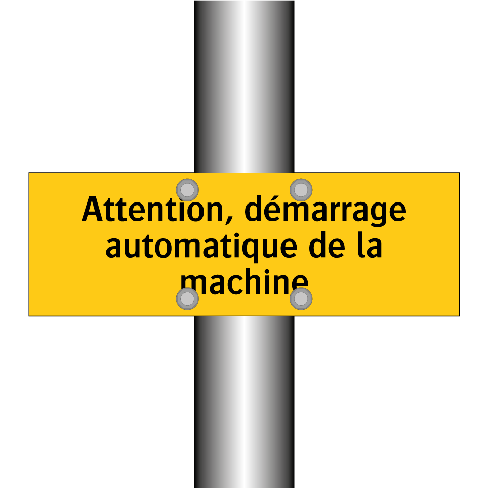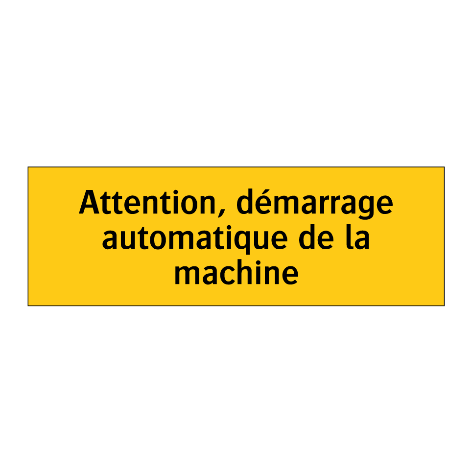 Panneau d'avertissement avec le texte : "Attention, démarrage automatique de la machine"