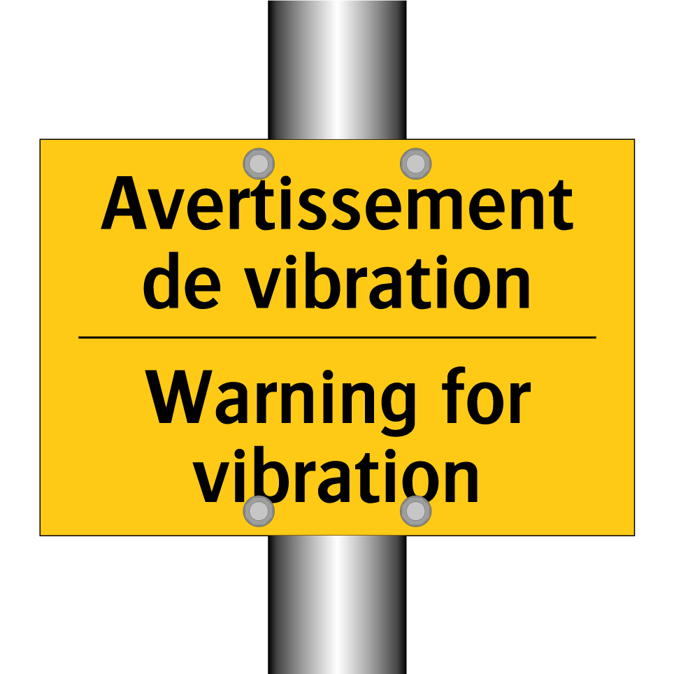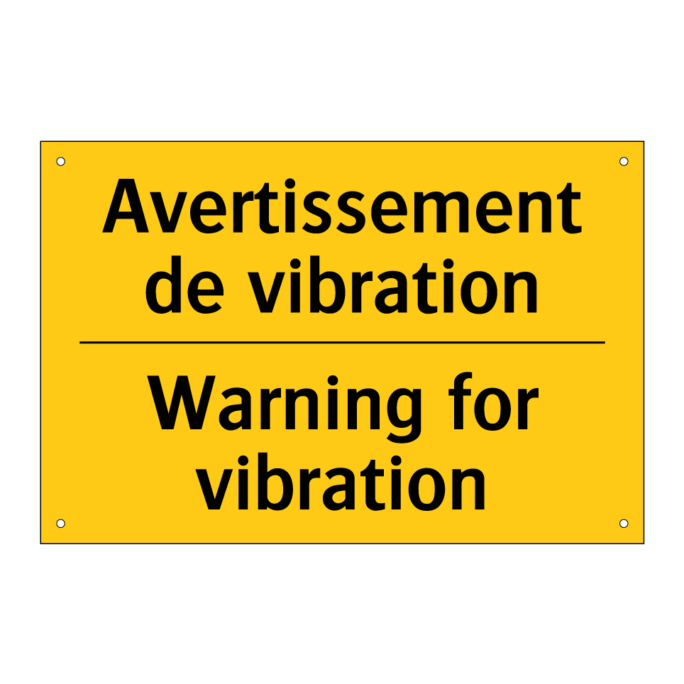 Panneau d'avertissement bilingue avec texte en français : "Avertissement de vibration", et en anglais : "Warning for vibration"