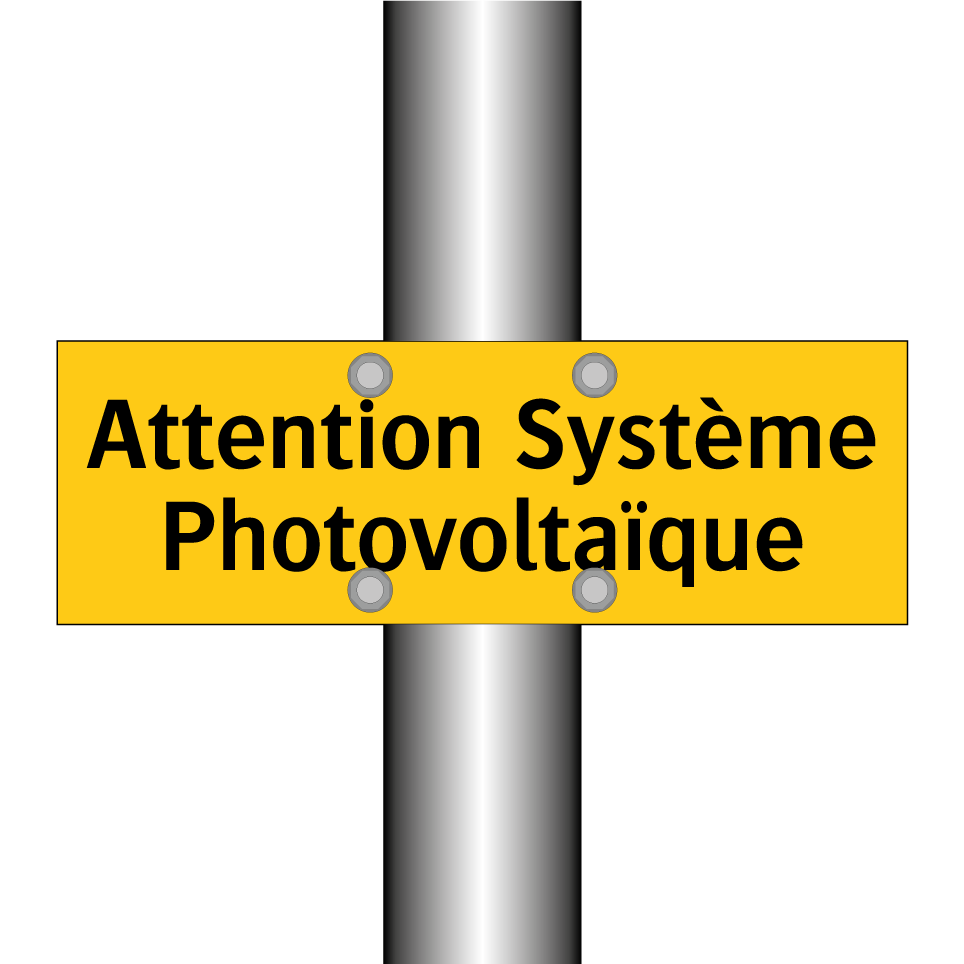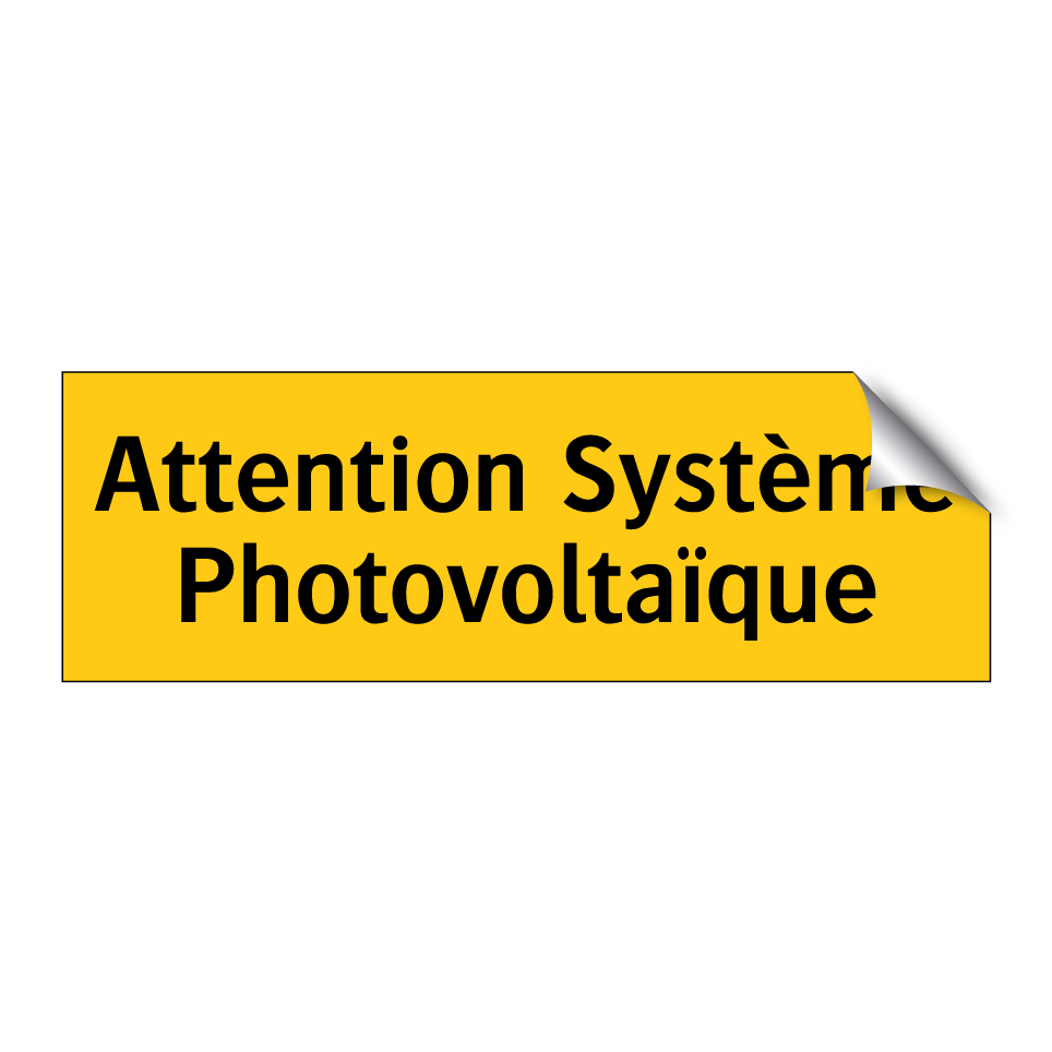 Panneau d'avertissement avec le texte : "Attention Système Photovoltaïque"