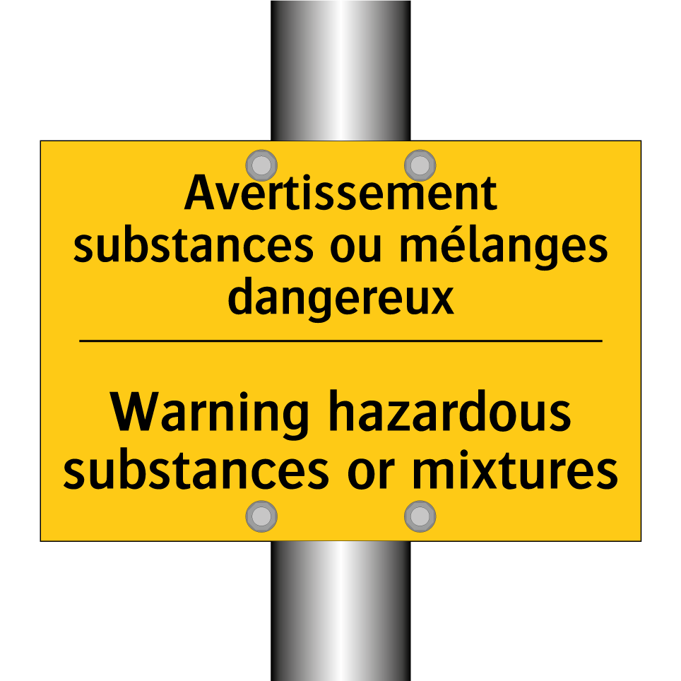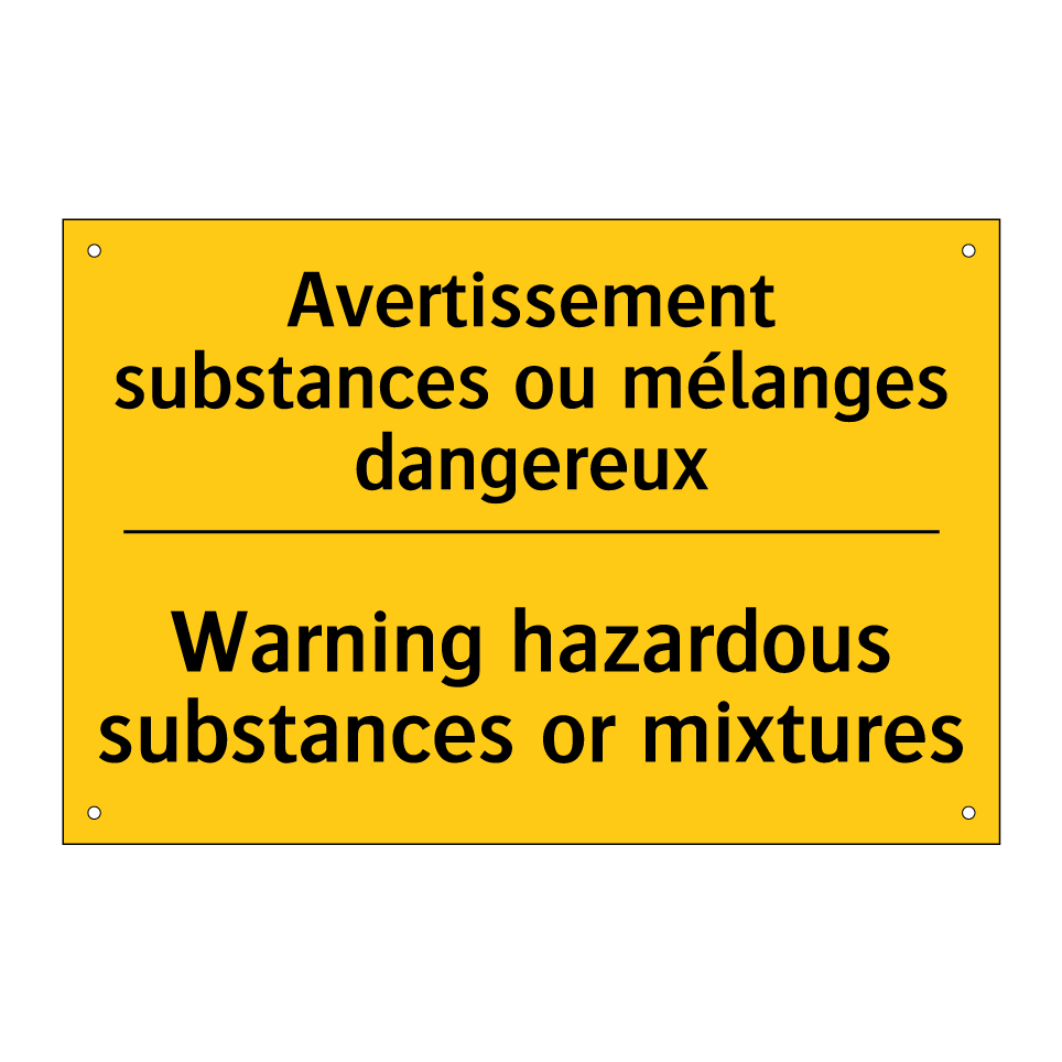 Panneau d'avertissement bilingue avec texte en français : "Avertissement substances ou mélanges dangereux", et en anglais : "Warning hazardous substances or mixtures"
