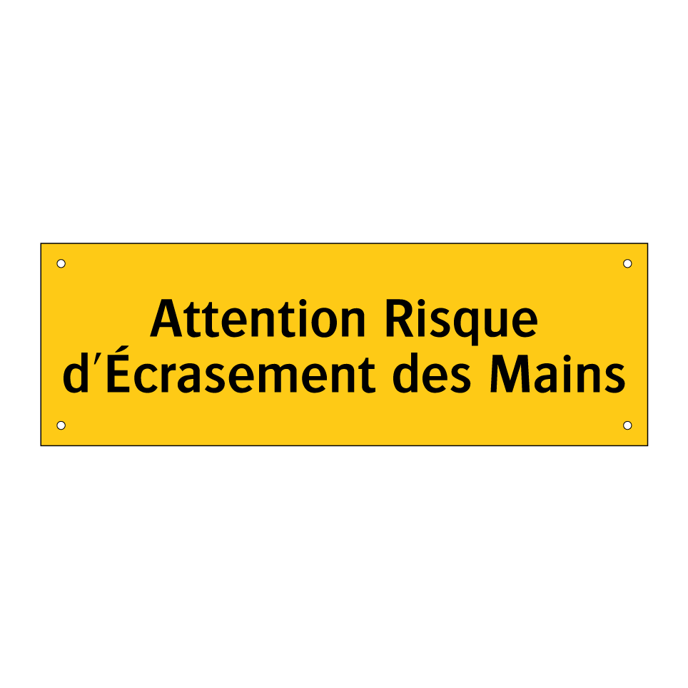 Panneau d'avertissement avec le texte : "Attention Risque d'Écrasement des Mains"