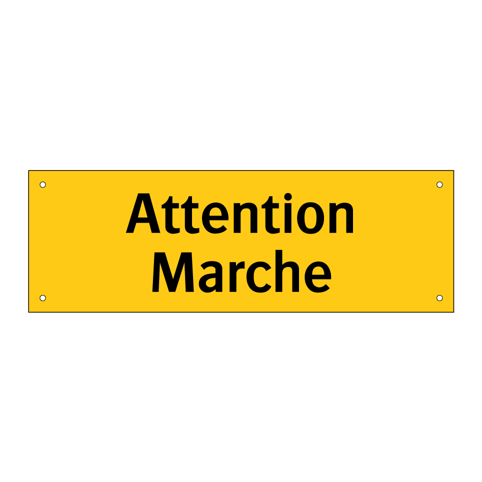 Panneau d'avertissement avec le texte : "Attention Marche"