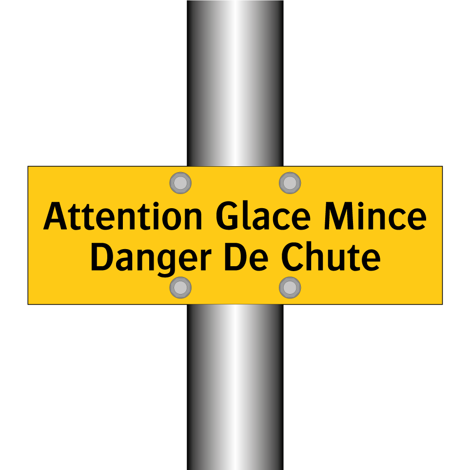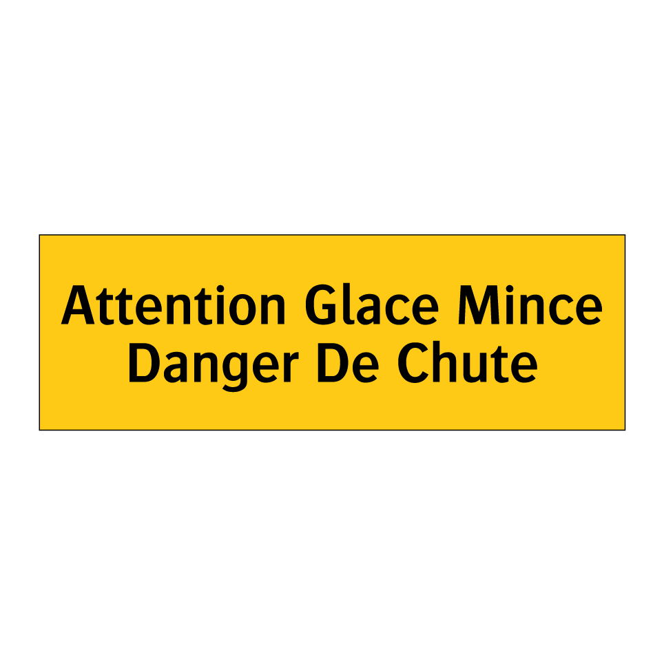 Panneau d'avertissement avec le texte : "Attention Glace Mince Danger De Chute"