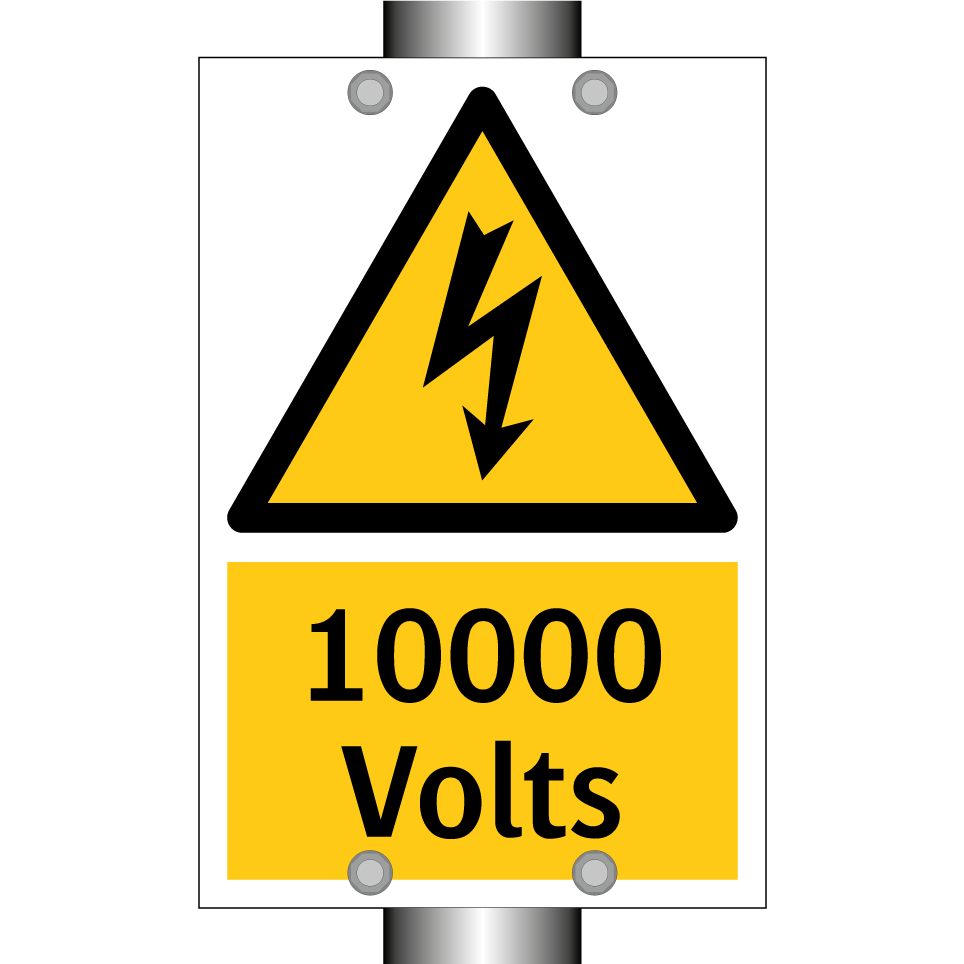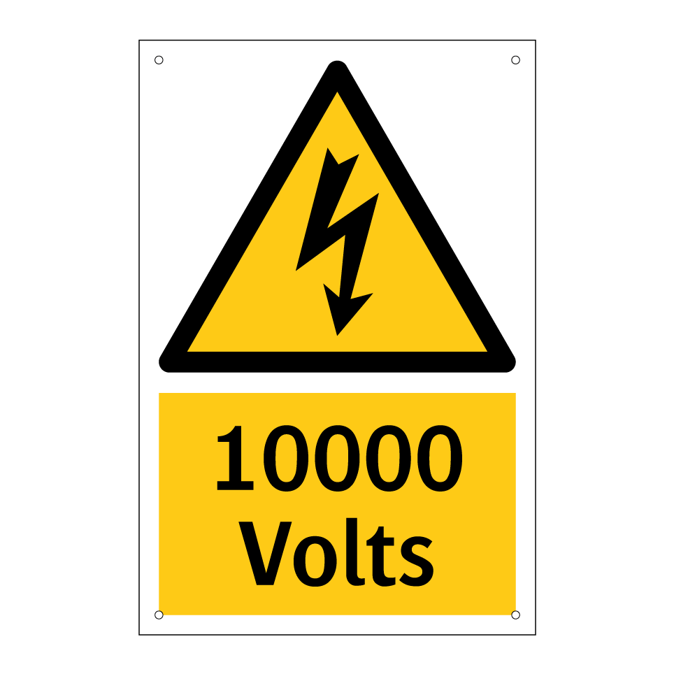 Panneau d'avertissement avec le texte : "10000 Volts"