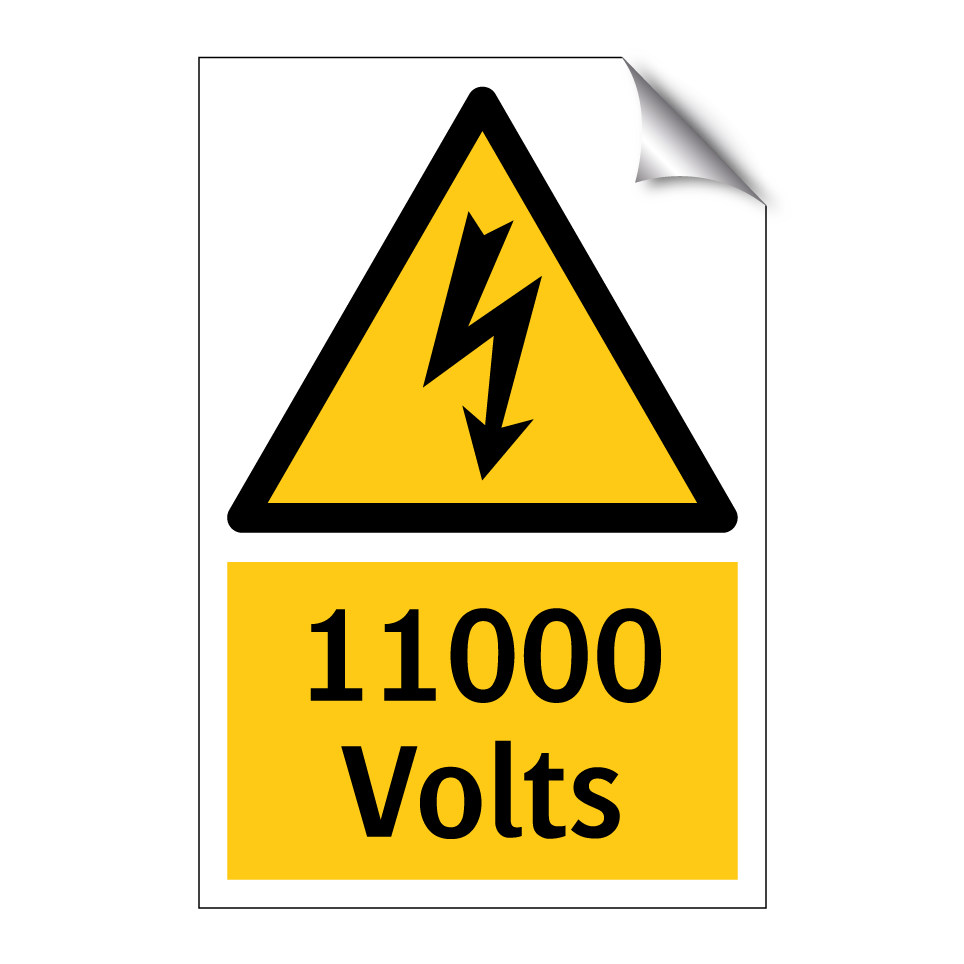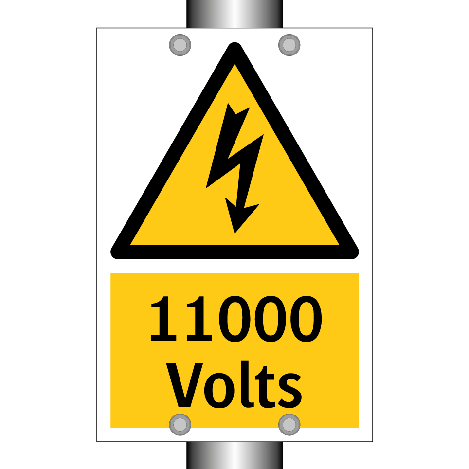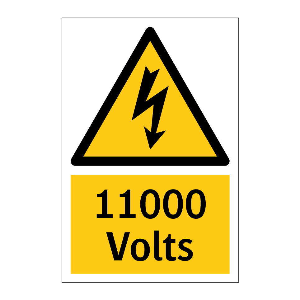 Panneau d'avertissement avec le texte : "11000 Volts"
