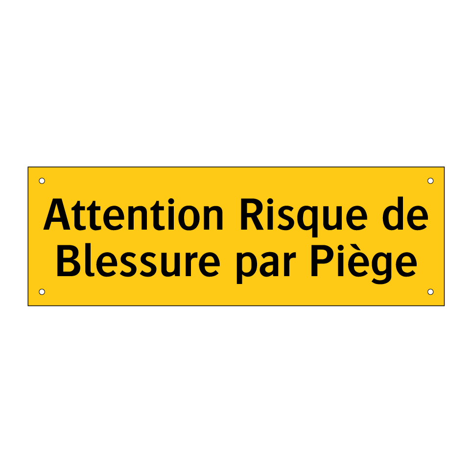 Panneau d'avertissement avec le texte : "Attention Risque de Blessure par Piège"