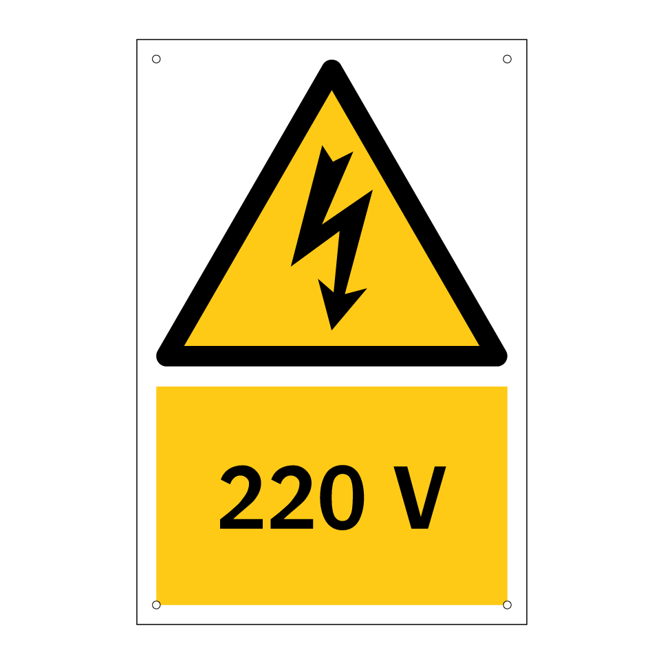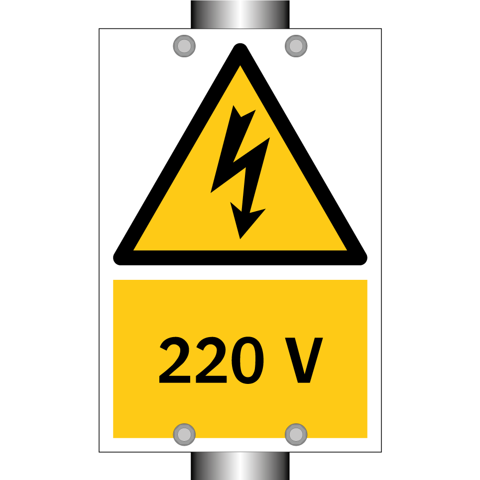 Panneau d'avertissement avec le texte : "220 V"
