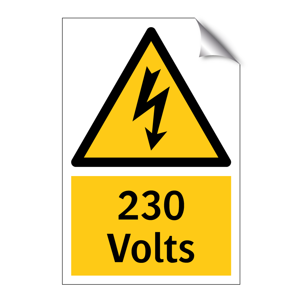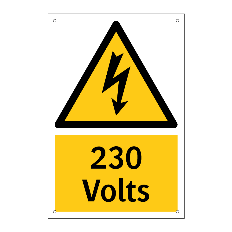 Panneau d'avertissement avec le texte : "230 Volts"