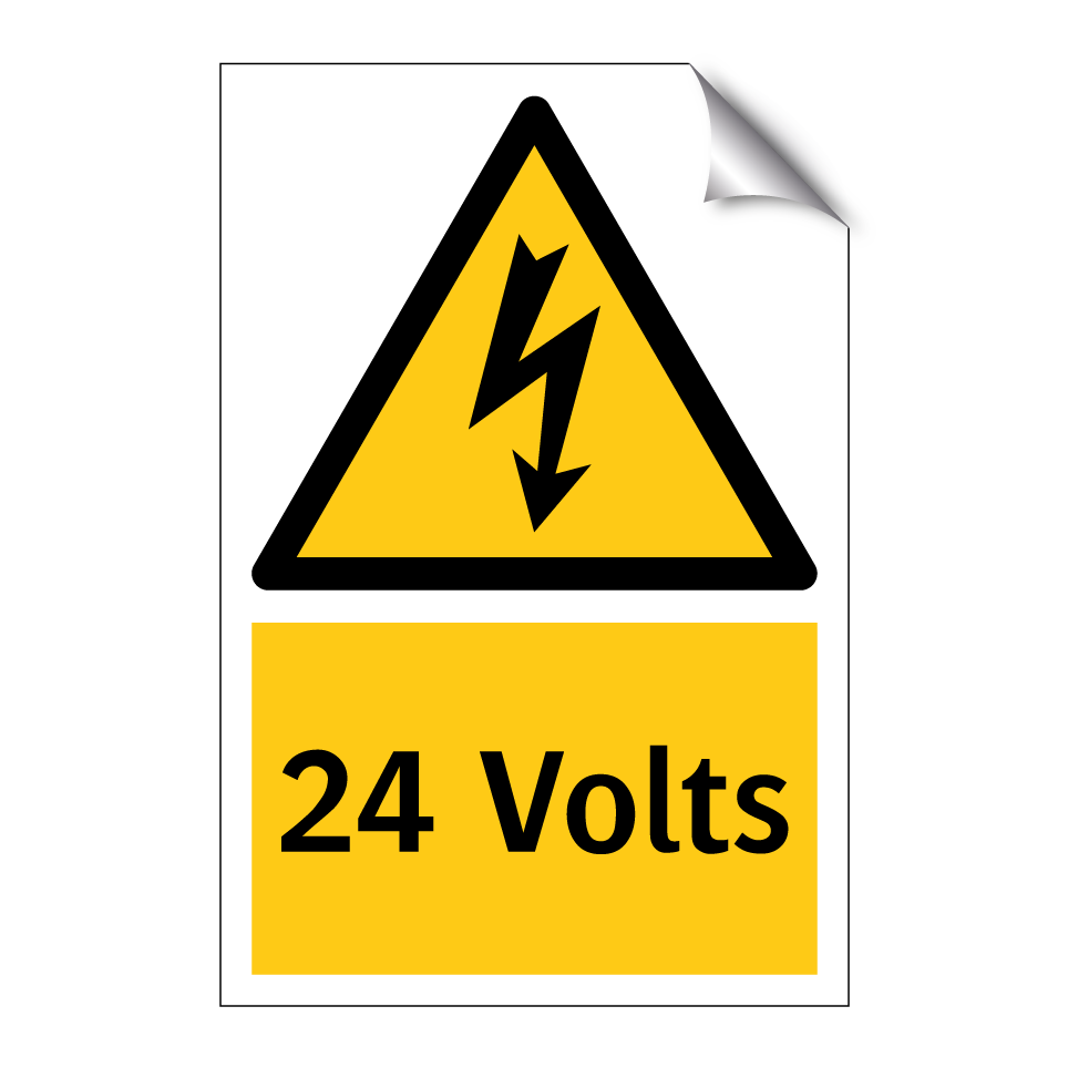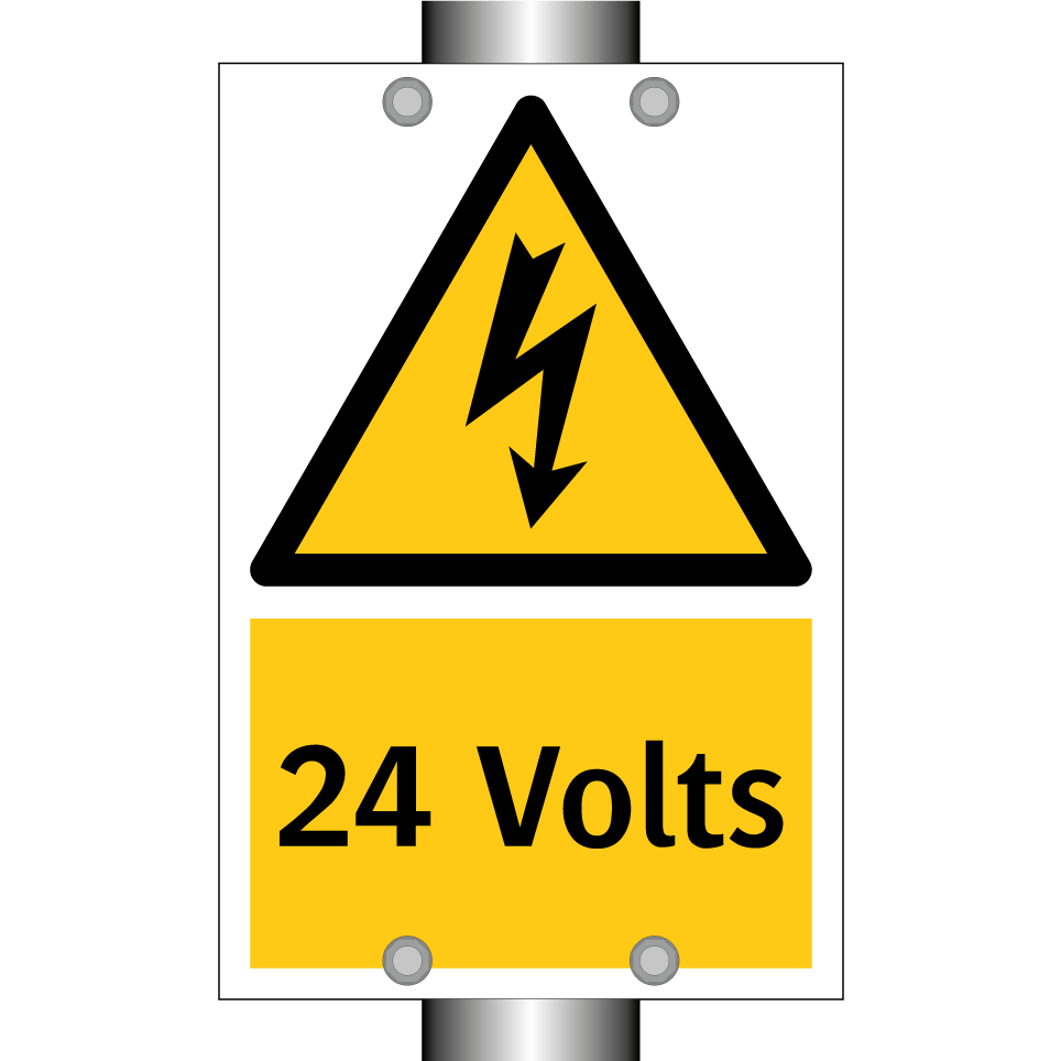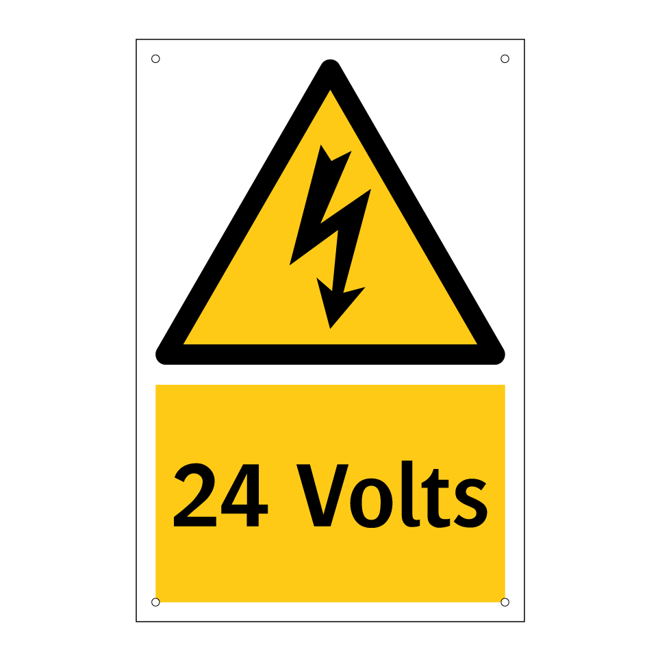 Panneau d'avertissement avec le texte : "24 Volts"