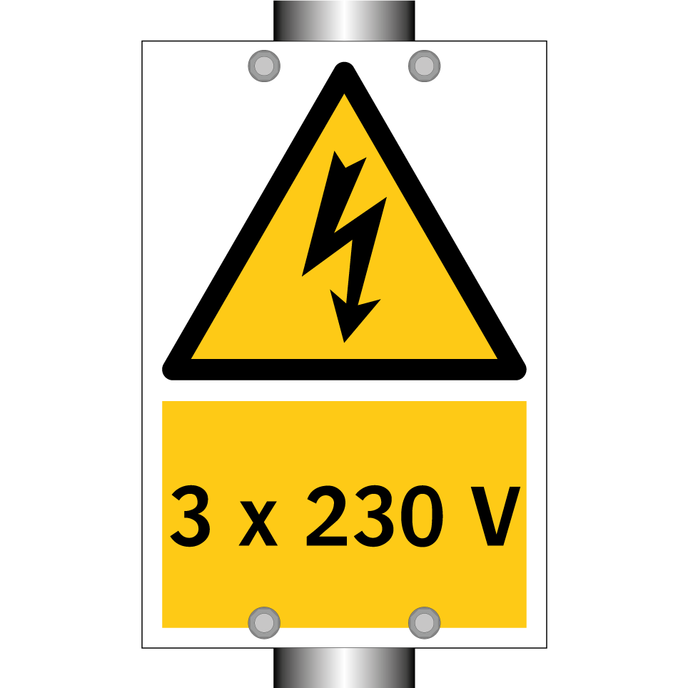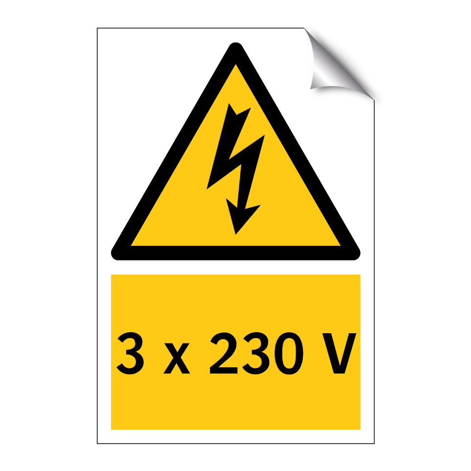 Panneau d'avertissement avec le texte : "3 x 230 V"