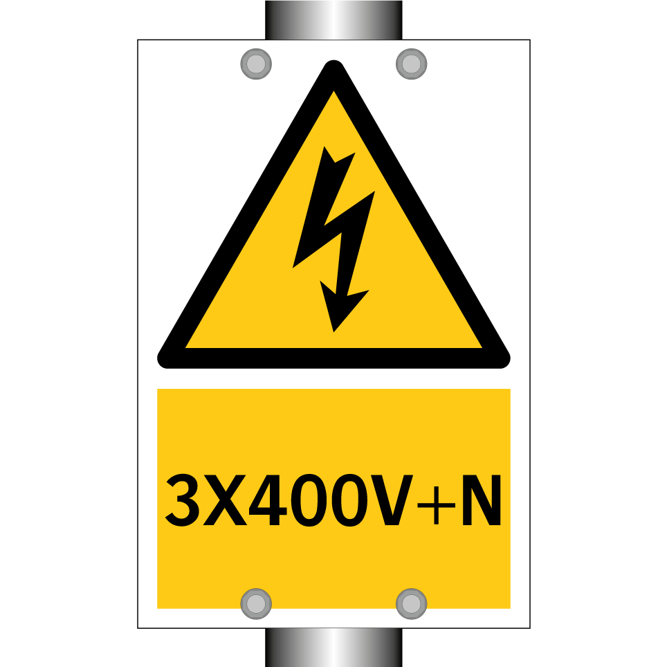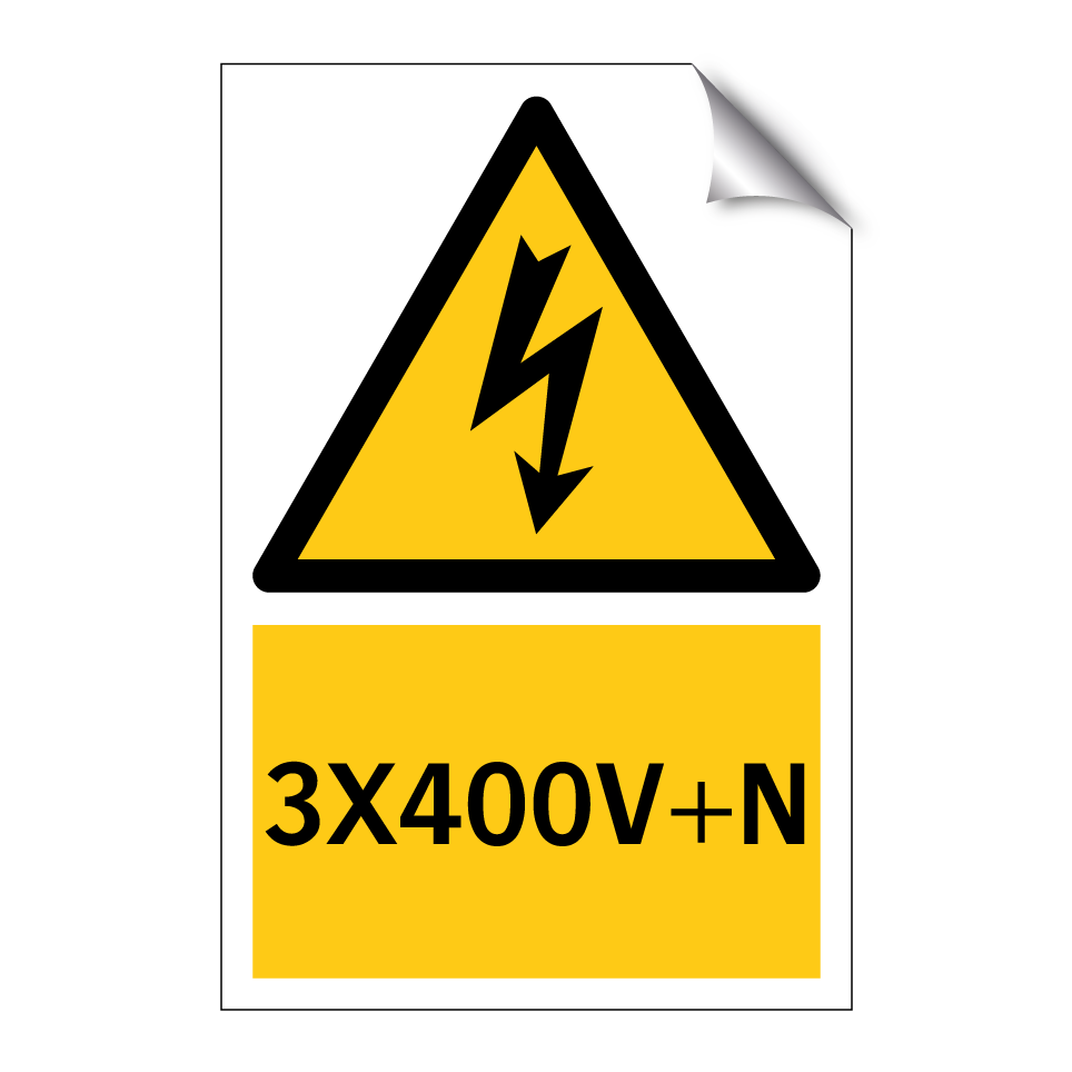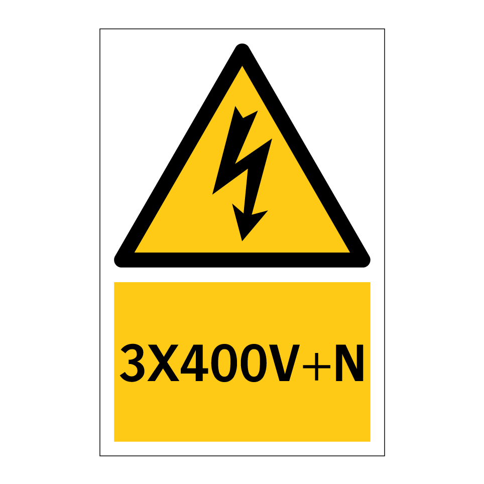 Panneau d'avertissement avec le texte : "3X400V+N"