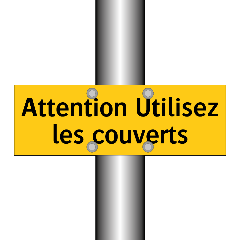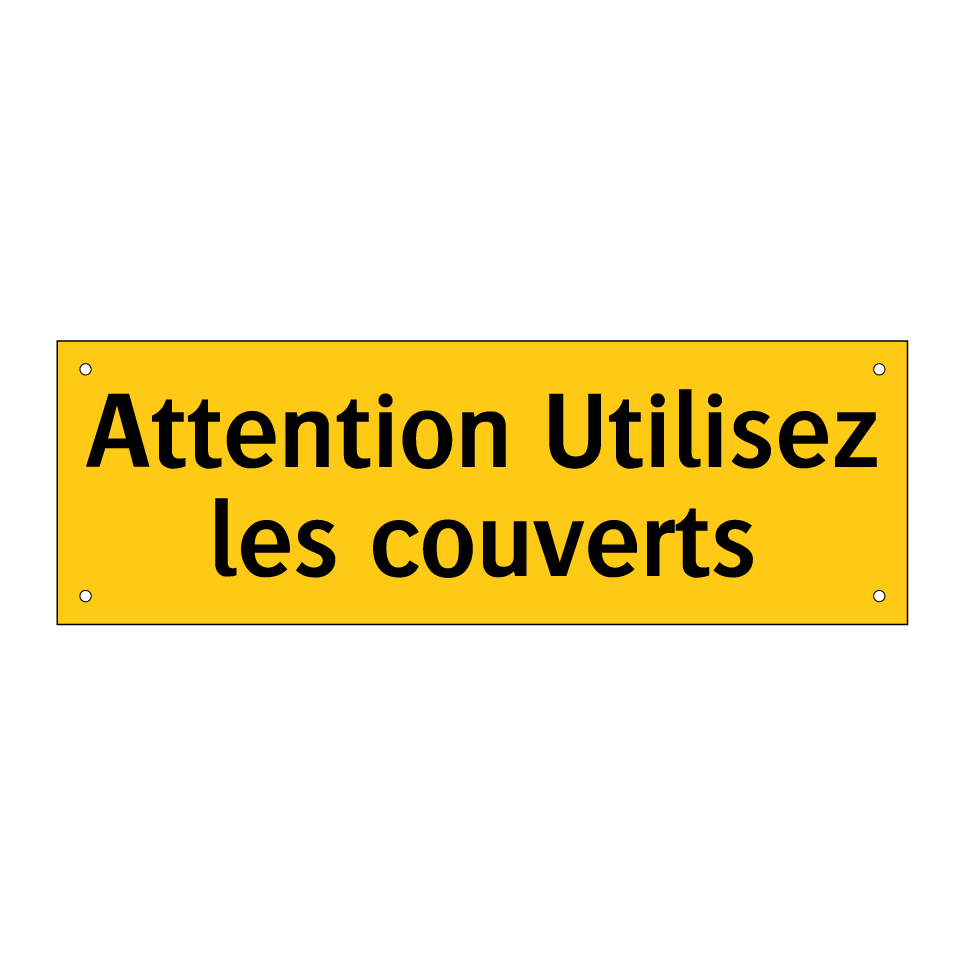 Panneau d'avertissement avec le texte : "Attention Utilisez les couverts"