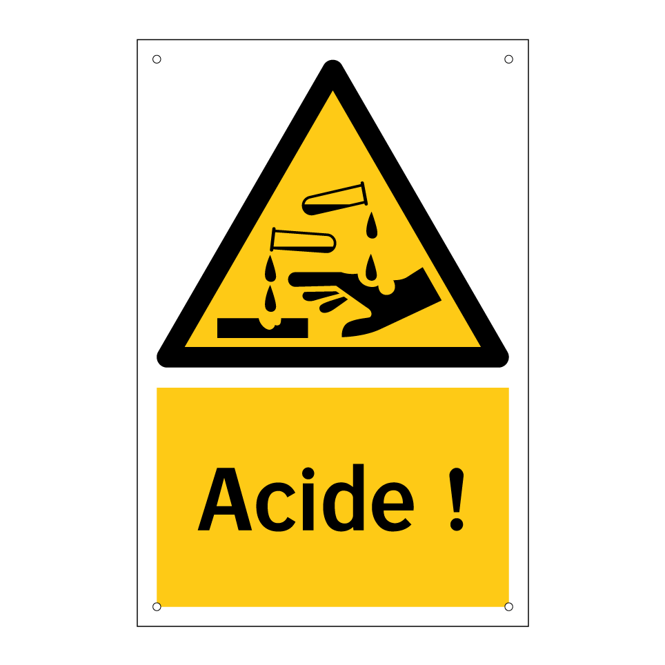 Ce panneau d'avertissement est essentiel pour garantir la sécurité dans les environnements où des substances dangereuses sont présentes. Idéal pour les laboratoires, les usines chimiques ou les zones de stockage, il informe clairement les employés et visiteurs des risques potentiels liés à la présence d'acides. Grâce à sa couleur jaune vive et son texte noir contrastant, ce panneau capte immédiatement l'attention, réduisant ainsi le risque d'accidents. Placez-le à l'entrée des zones à risque, près des équipements de manipulation de produits chimiques ou dans tout espace nécessitant une mise en garde explicite. Ce panneau est un outil indispensable pour prévenir les incidents et assurer un environnement de travail sécurisé.
