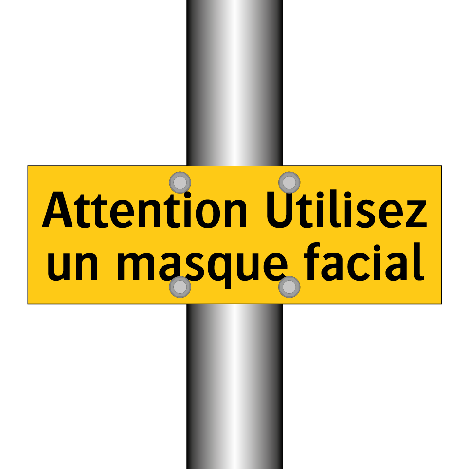 Panneau d'avertissement avec le texte : "Attention Utilisez un masque facial"