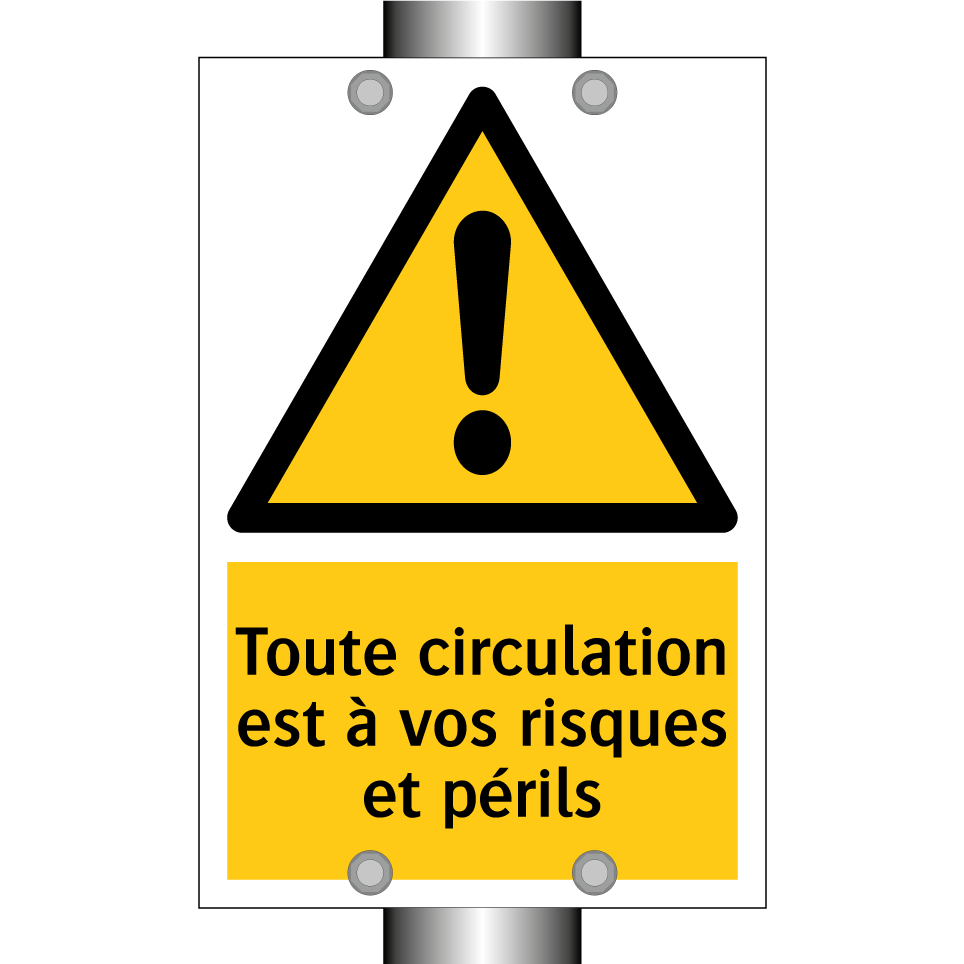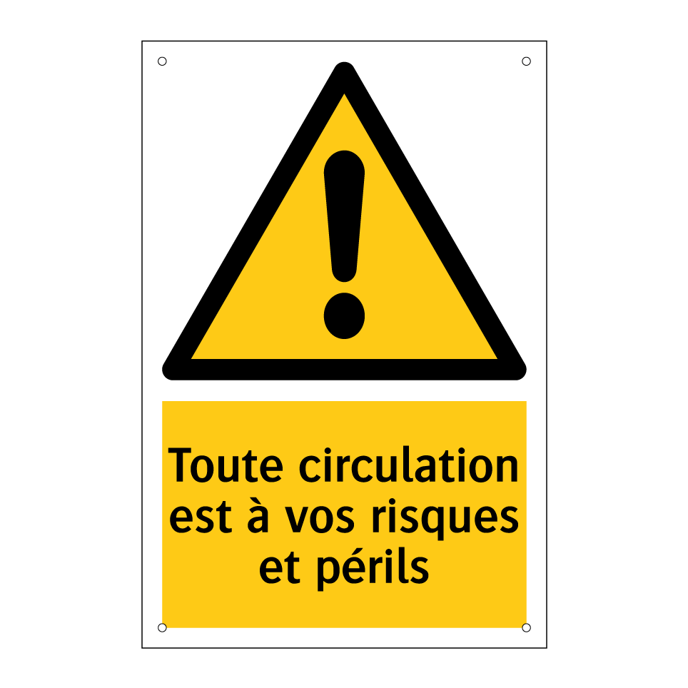 Panneau d'avertissement avec le texte : "Toute circulation est à vos risques et périls"